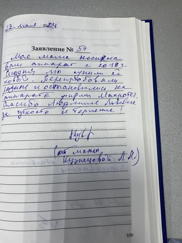 добрый день, сегодня 24.05 была приглашена на выдачу слух аппарата. настроили, все показали и объяснили. спасибо за уделенное время.