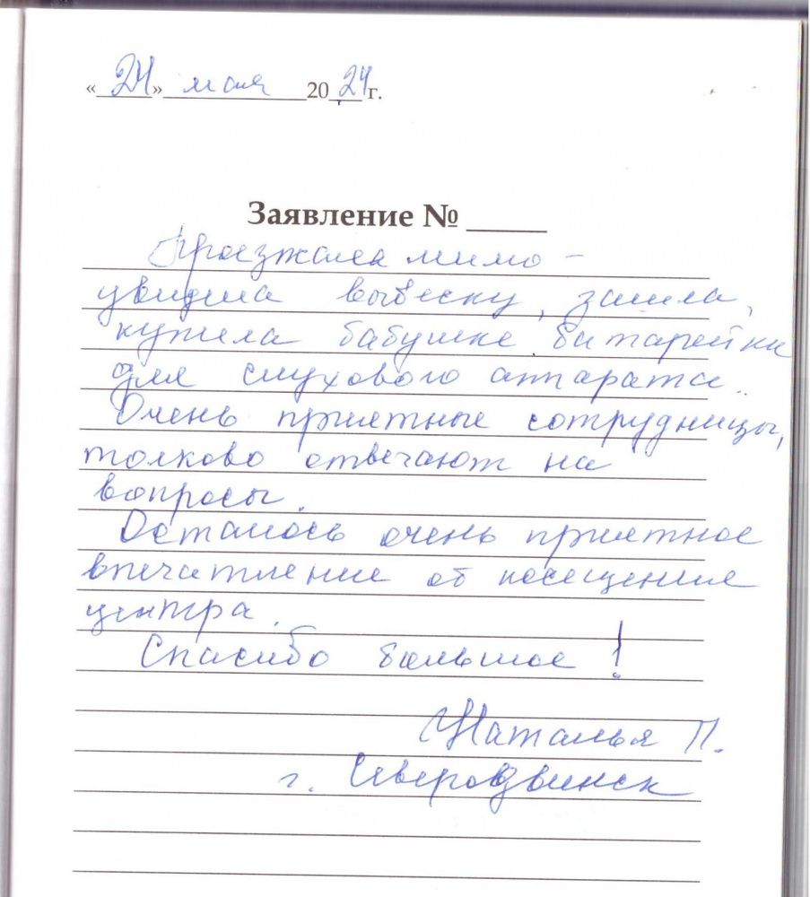 Проезжала мимо-увидела вывеску, зашла, купила бабушке батарейки для слухового аппарата. Очень приятные сотрудницы, толково отвечают на вопросы. Осталось очень приятное впечатление от посещения центра. Спасибо большое! Наталь П. г. Северодвинск