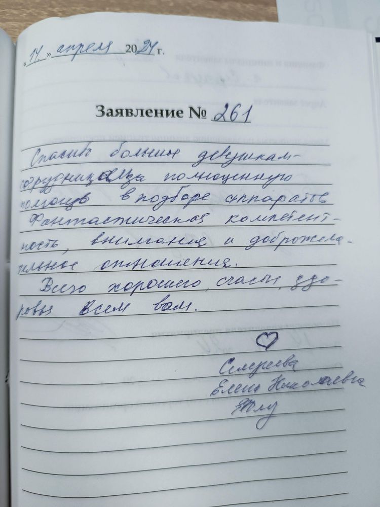 Спасибо большое девушкам-сотрудницам за полноценную помощь в подборе аппаратов. Фантастическая компетентность, внимание и доброжелательное отношение. Всего хорошего, счастья, здоровья всем вам. Селезнева Е.Н., г.Серпухов