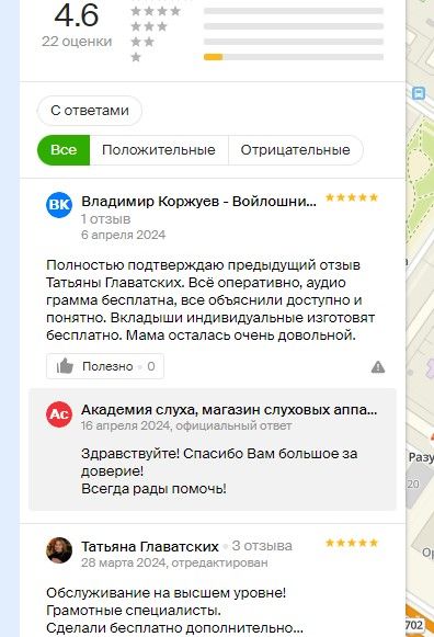 Я,Давыдова Л.И 04.04.2024 г посетила Академию слуха,для изготовления ушных вкладышей.сердечное спасибо за доброжилательность,тактичность всем сотрудникам и профессионализм. С уважением Давыдова.
