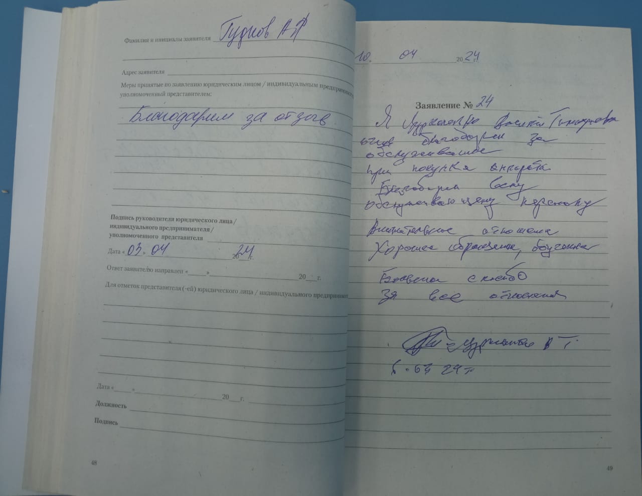 Я Цуркаленко Василий Тимофеевич благодарен за обслуживание при покупке аппарата. Безупречное обслуживание. Внимательное отношение.Хорошее обращение, обучение.Большое спасибо за все отношения. Цуркаленко В.Т