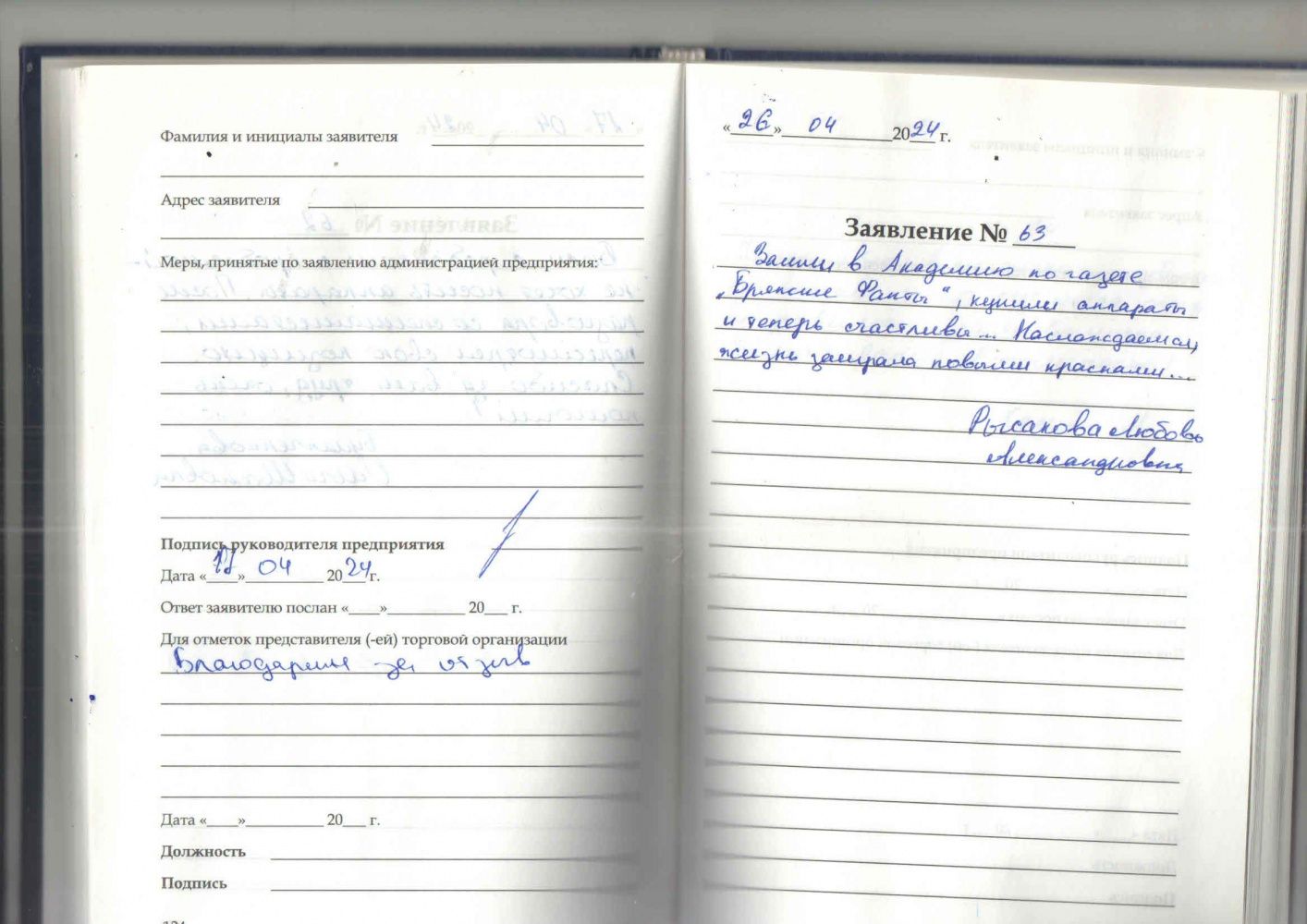 - Заявка на рассрочку