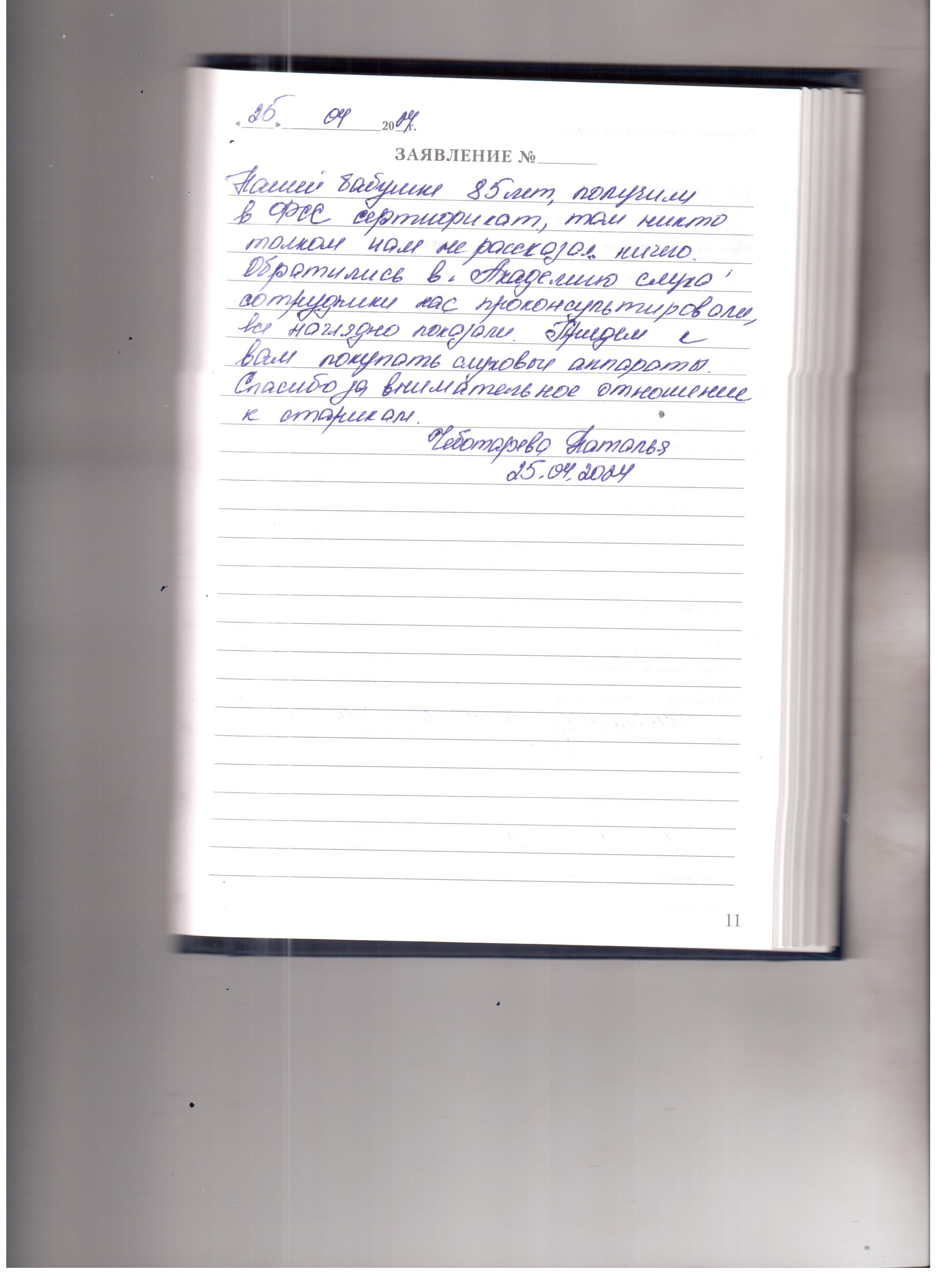 Нашей бабушке 85 лет, получили в ФСС сертификат, там никто ничего толком нам не рассказал ничего. Обратились в «Академию Слуха» , сотрудники нас проконсультировали, все наглядно показали. Придем к вам покупать слуховые аппараты. Спасибо за внимательное отношение к старикам.