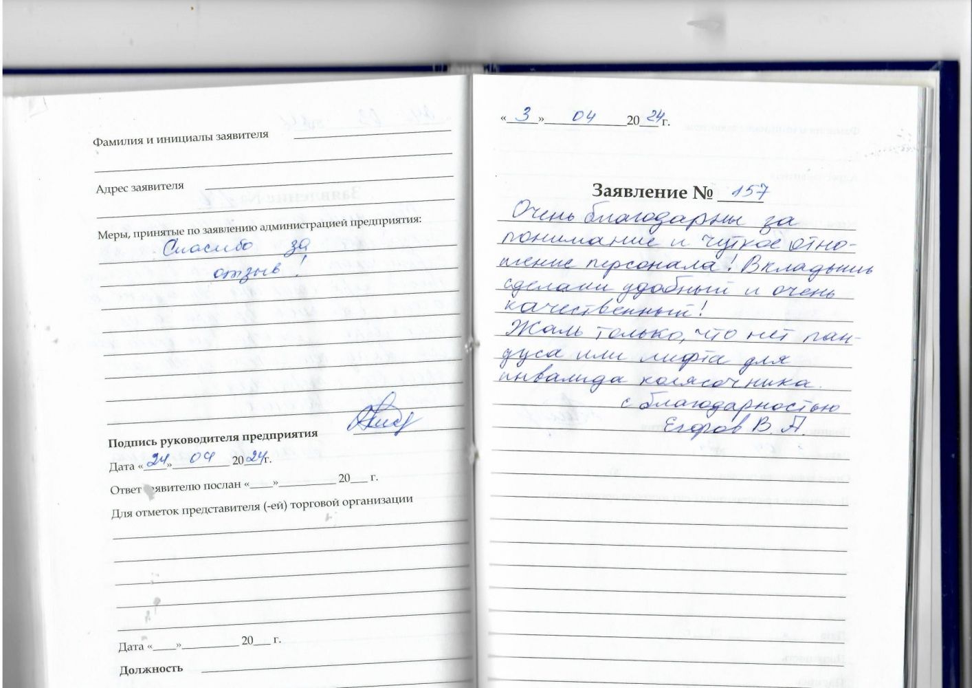 Очень благодарны за понимание и чуткое отношение персонала! Вкладыш сделали удобный и очень качественный! Жаль только, что нет пандуса или лифта для инвалида колясочника.