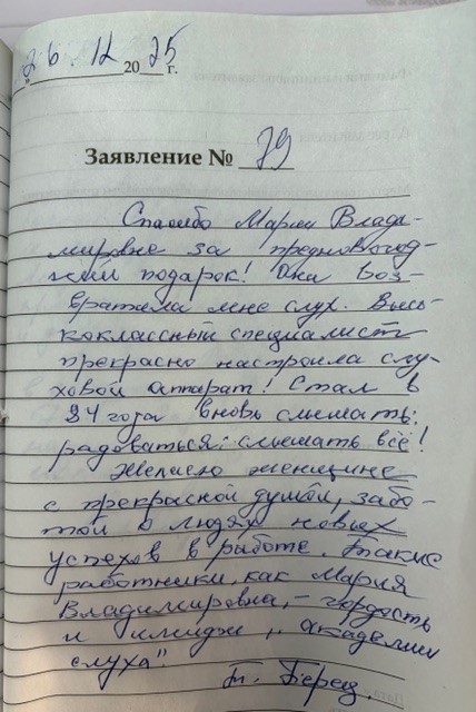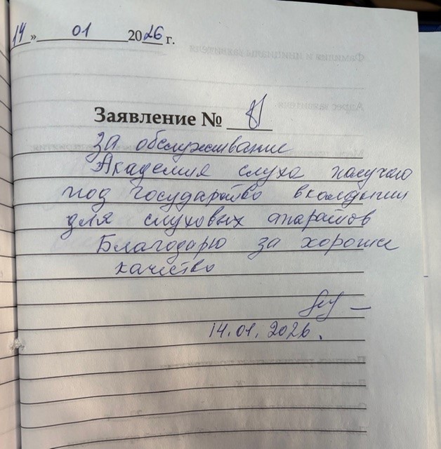 3. 14.01.2026 За обслуживание Академия слуха, получаю от государства вкладыши для слухового аппарата. Благодарю за хорошее качество.