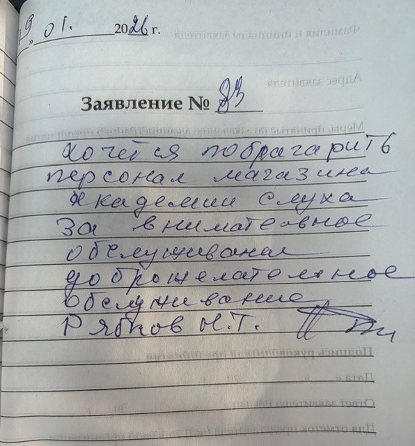 5. 19.01.2026 хочется поблагодарить персонал магазина Академии слуха за внимательное обслуживание, доброжелательное обслуживание. Рябков Н.Т