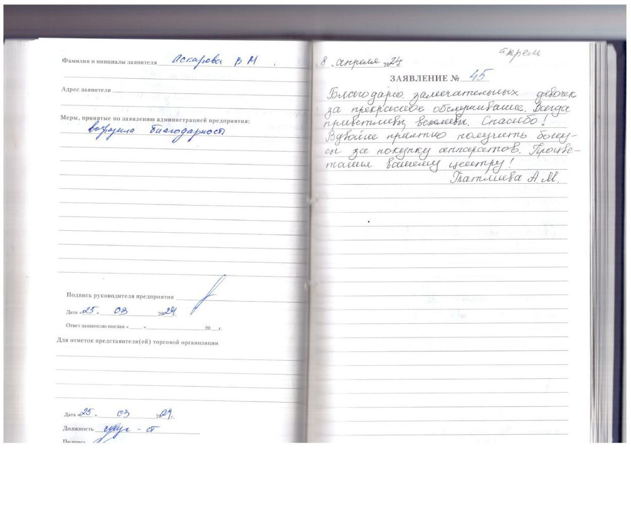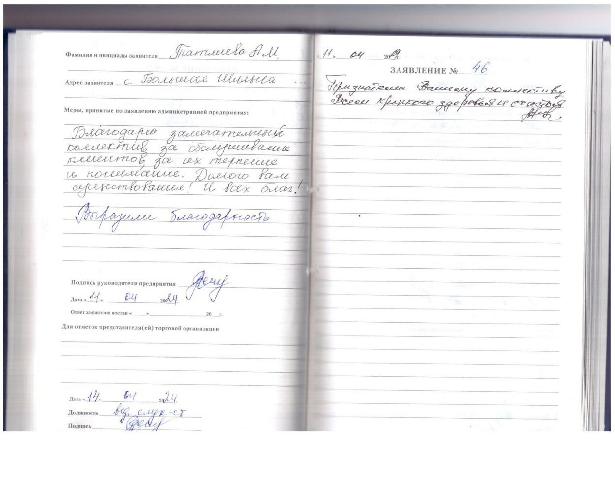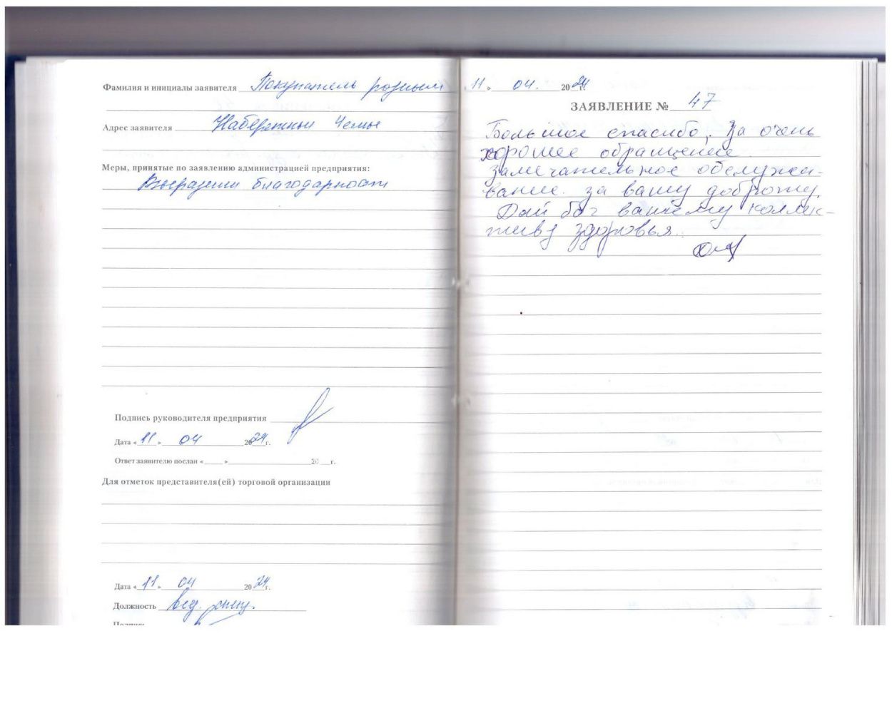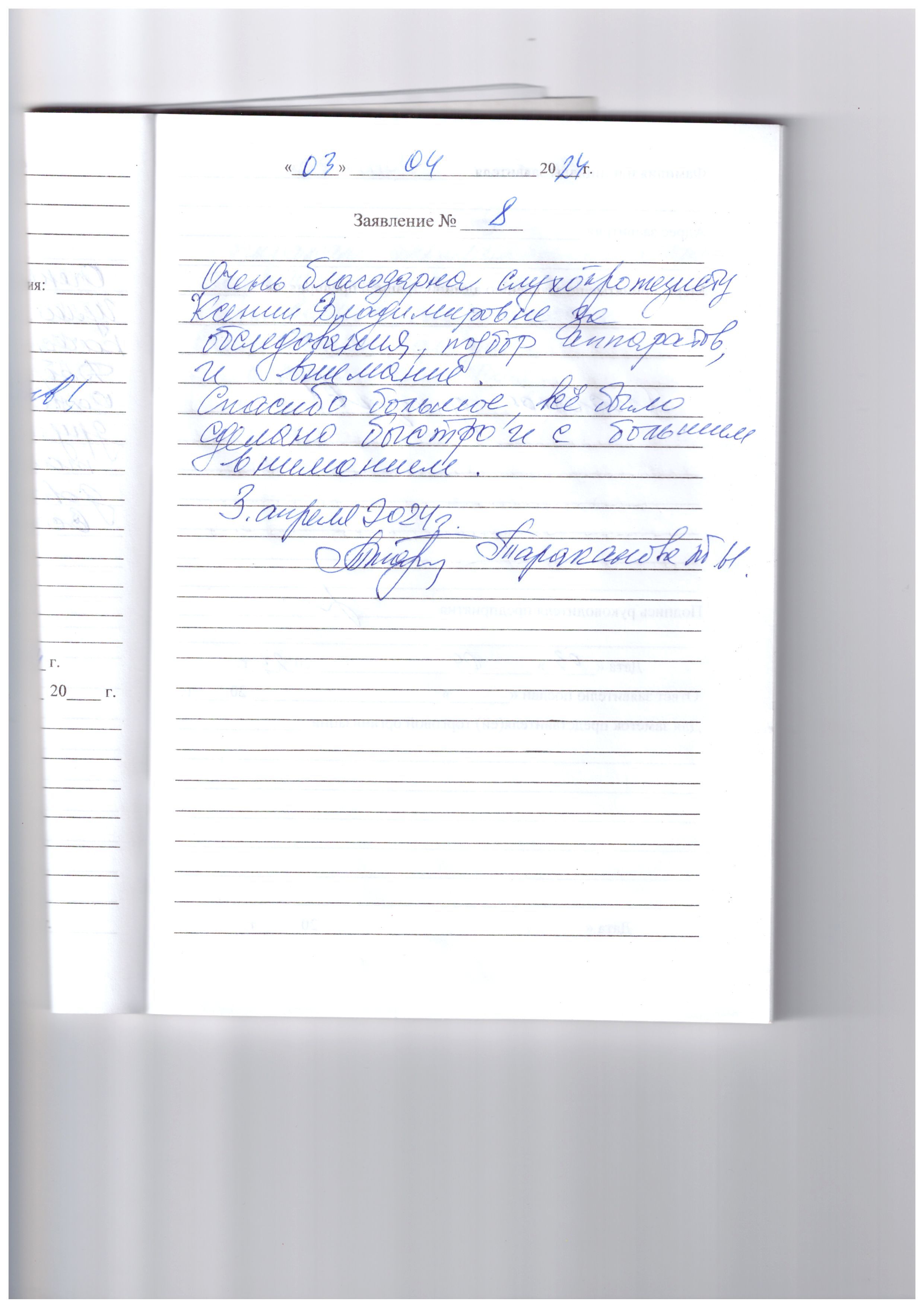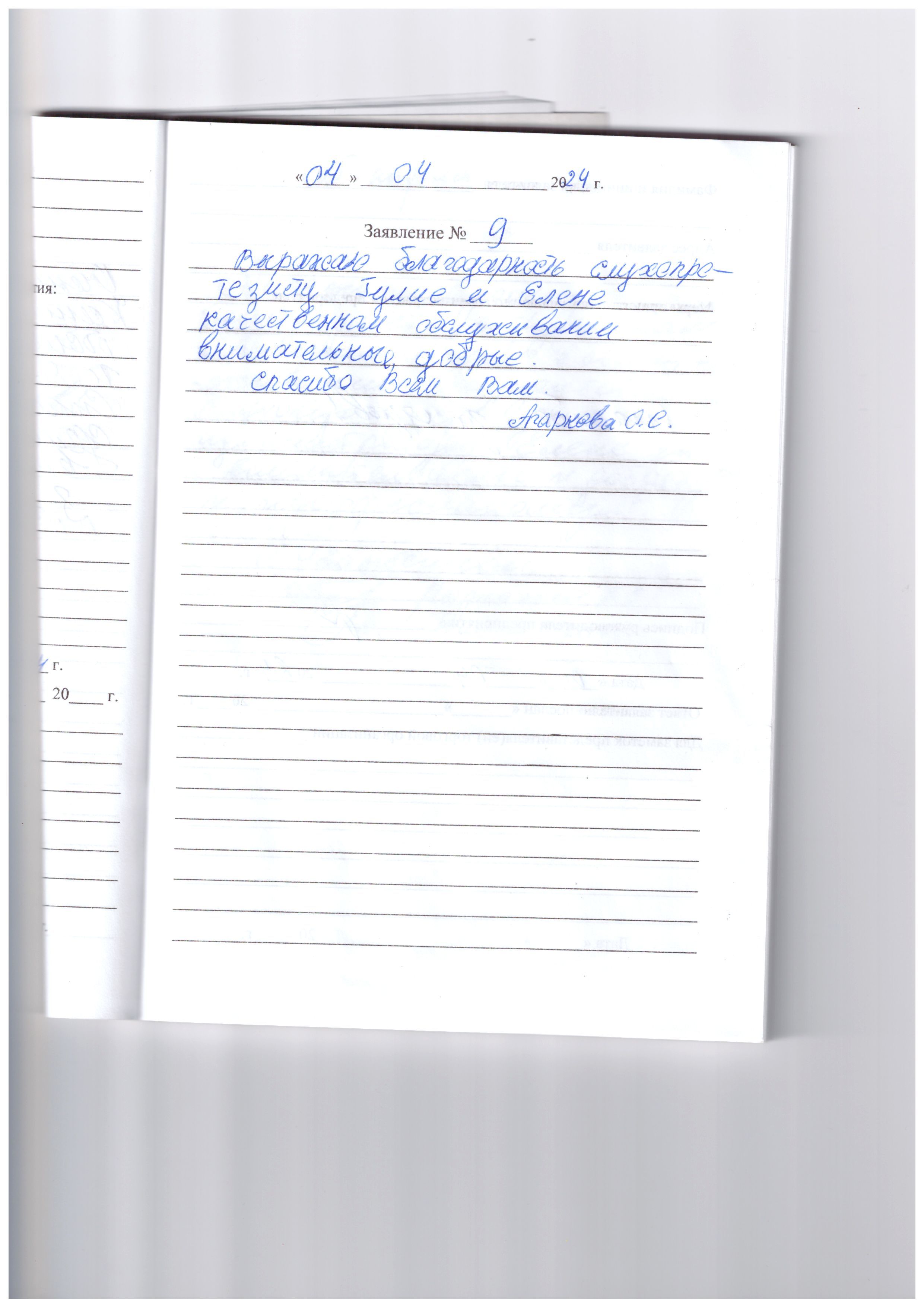 Большое спасибо, за очень хорошее обращение. Замечательное обслуживание за вашу доброту. Дай бог вашему коллективу здоровья.