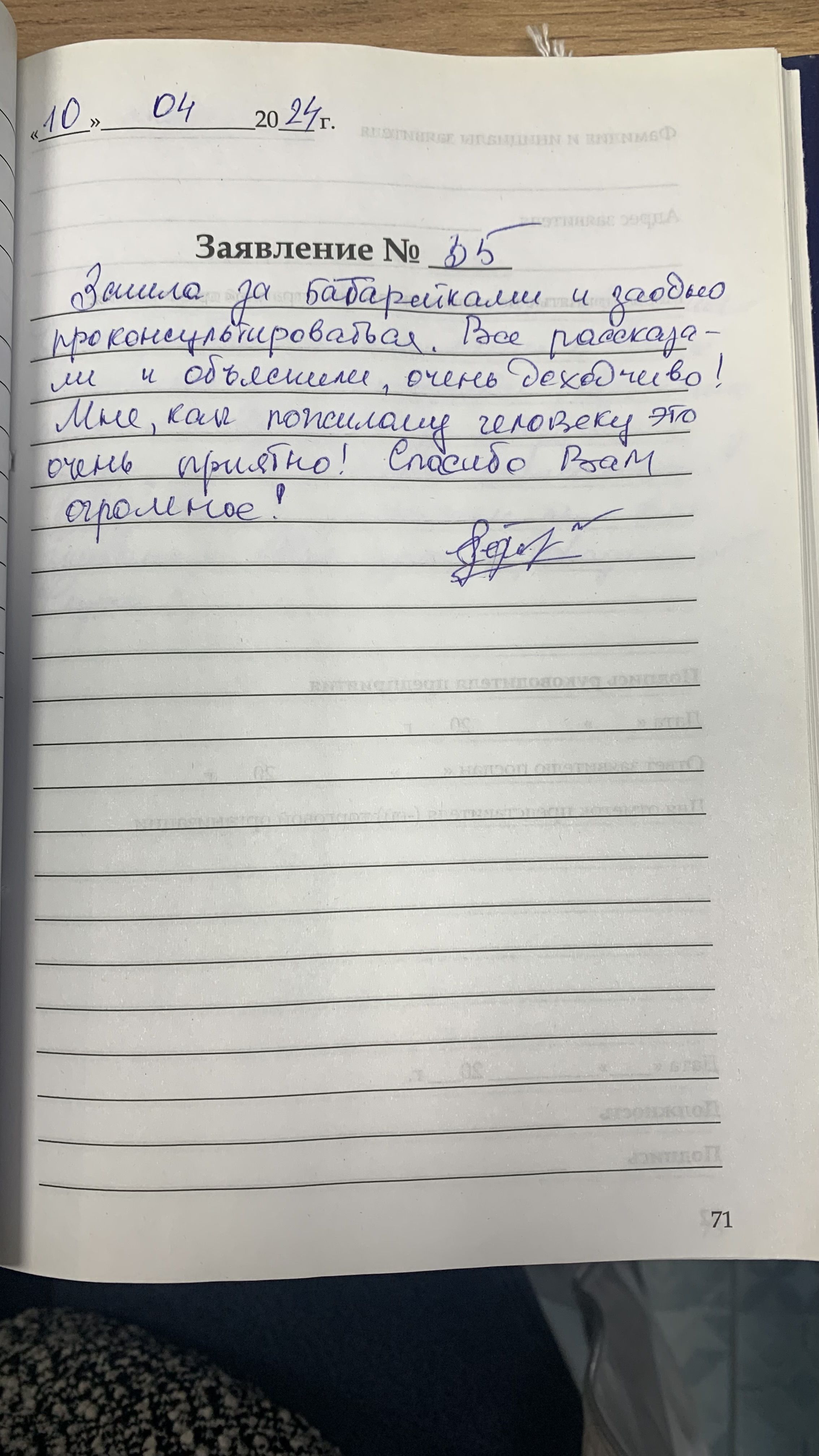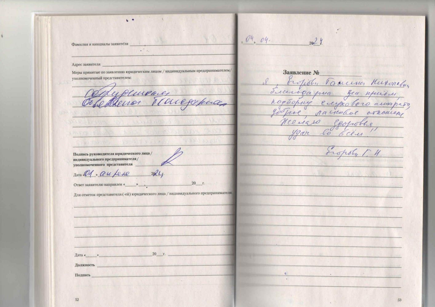 Я, Егорова Галина Николаевна, благодарна за прием, подборку слухового аппарата, доброе, ласковое отношение. Желаю здоровья, удач во всем!