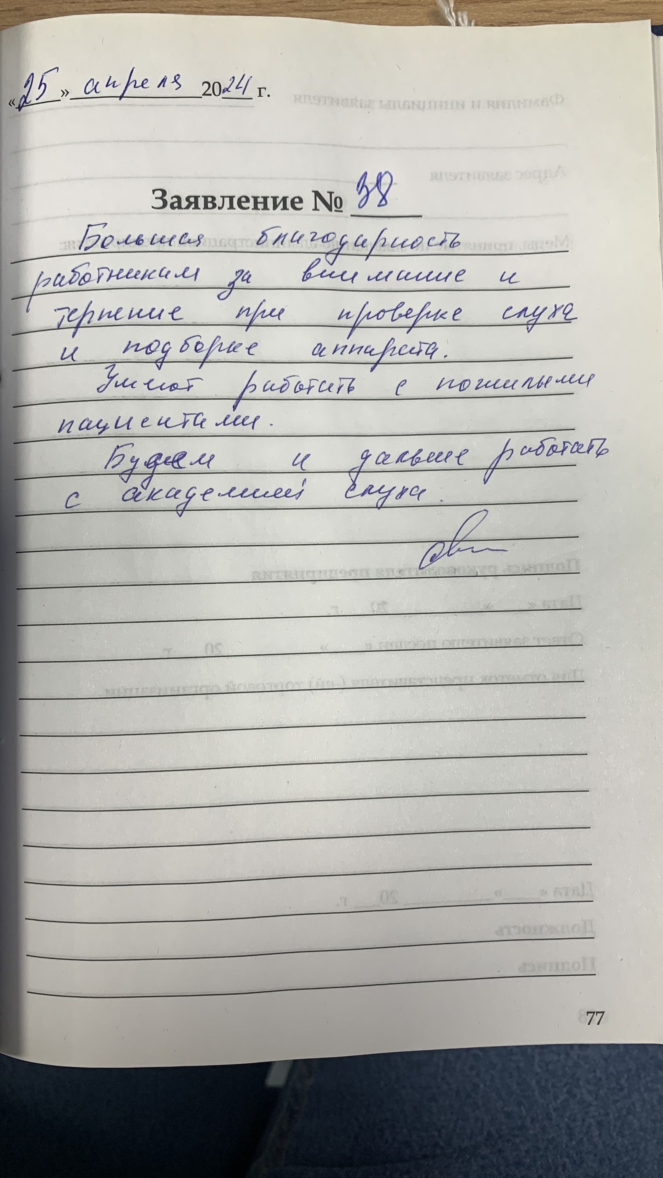 Благодарю коллектив за внимательное отношение ко мне. Настроили аппарат быстро и точно. Сейчас все слышу. Желаю здоровья всем.