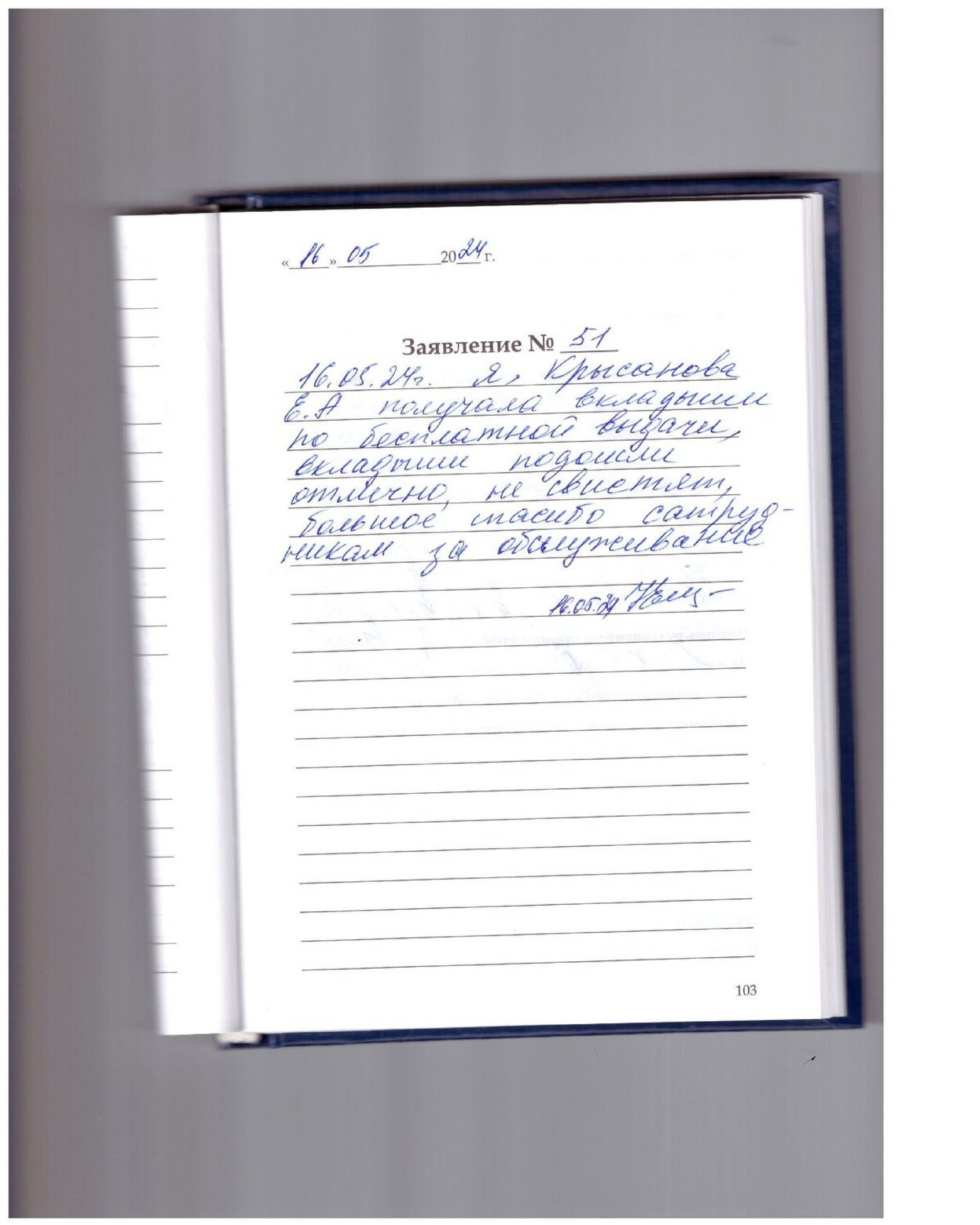16.05.2024 я,Крысанова ЕВ получала вкладыши по бесплатной выдачи, вкладыши подошли отлично, не свистят, большое спасибо сотрудникам за обслуживание.