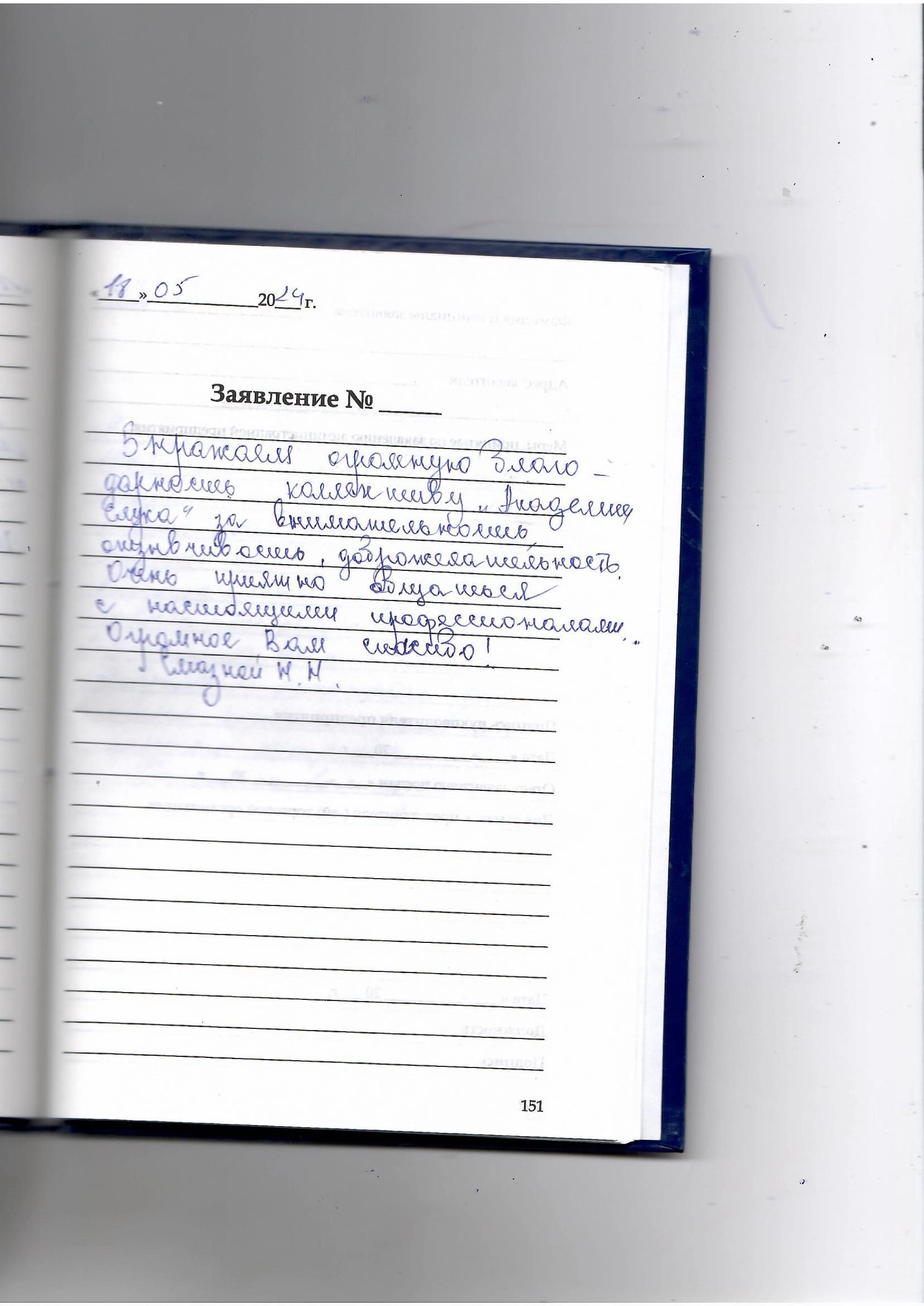 Выражаем огромную благодарность коллективу "Академия слуха" за внимательность, отзывчивость, доброжелательность. Очень приятно общаться с настоящими профессионалами. Огромное Вам спасибо!