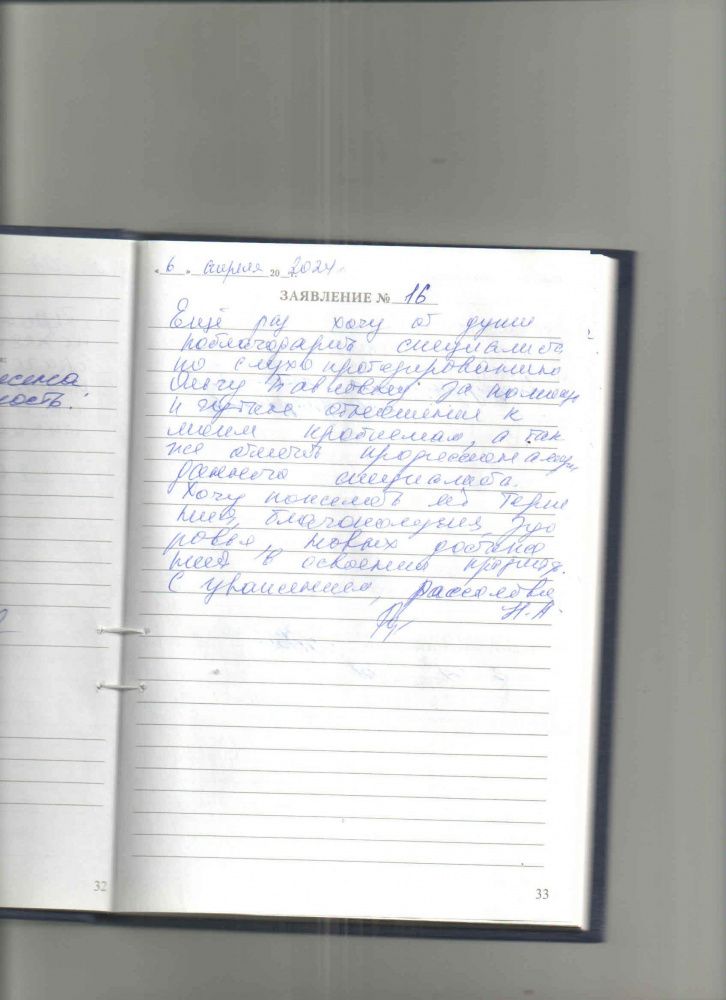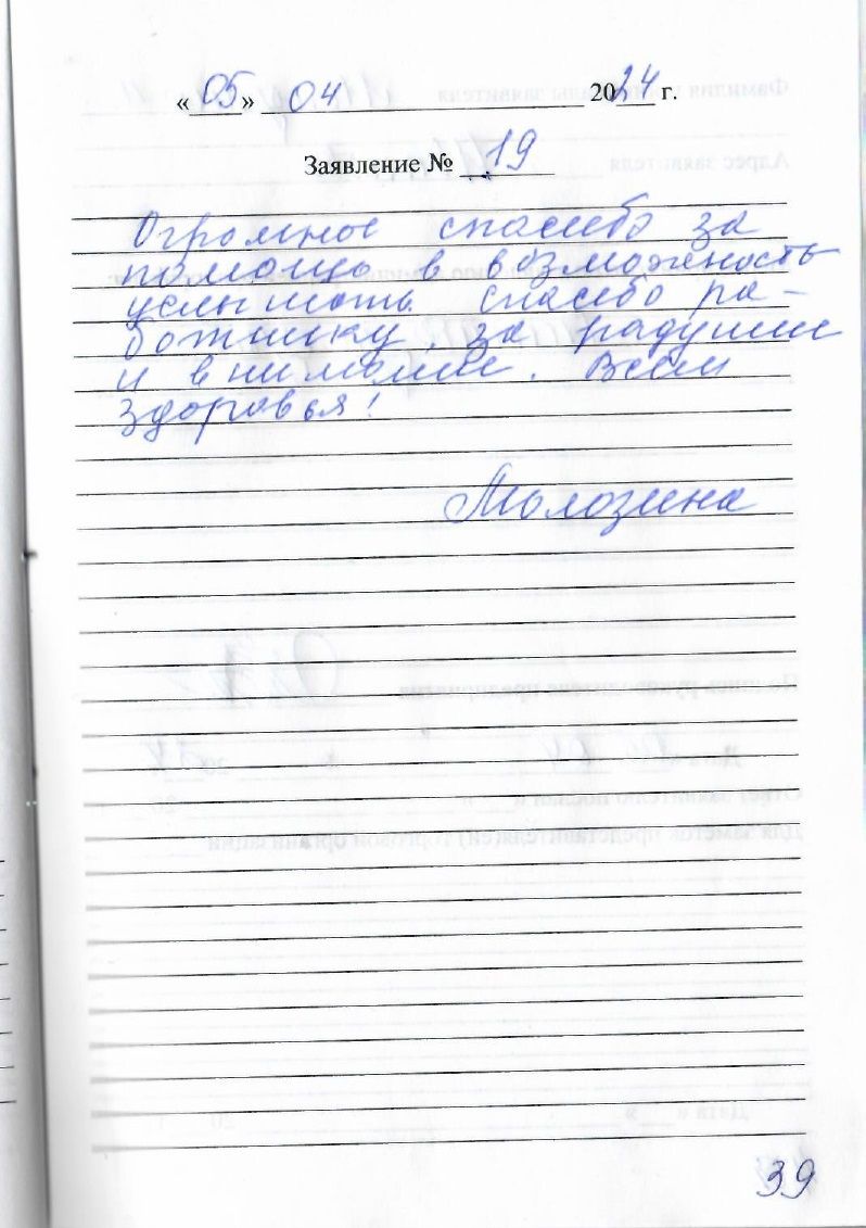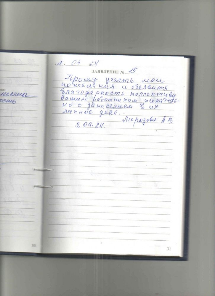 Прошу учесть мои пожелания и объявить благодарность коллективу вашим работникам ,желательно с занесением в их личное дело.
