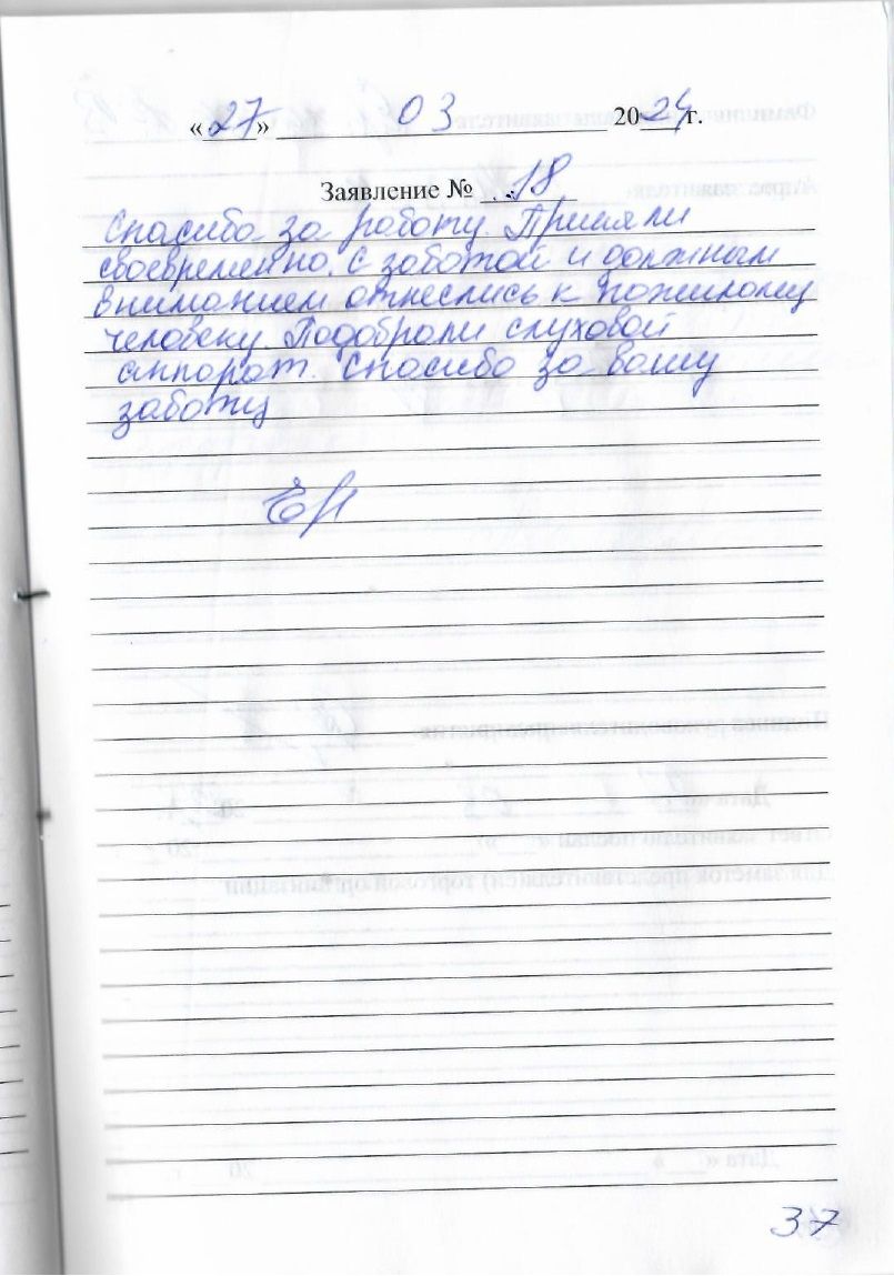 Спасибо за работу. Приняли своевременно. С заботой и должным вниманием отнеслись к пожилому человеку. Подобрали слуховой аппарат. Спасибо за вашу заботу.