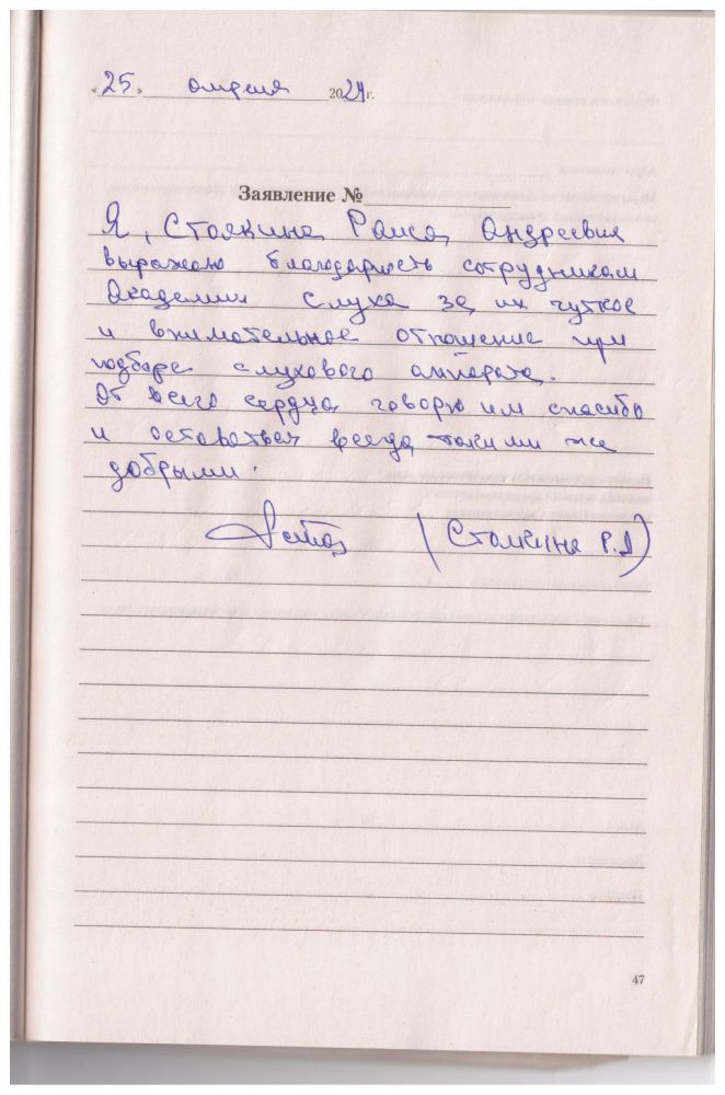 Огромное спасибо за помощь в возможности услышать. Спасибо работнику за радушие и внимание. Всем здоровья!