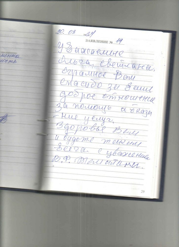 Уважаемые Ольга ,Светлана огромное Вам спасибо за ваше доброе отношение, за помощь и оказание услуг. Здоровья Вам и будьте такими всегда . С уважением Томилина В.Ф.