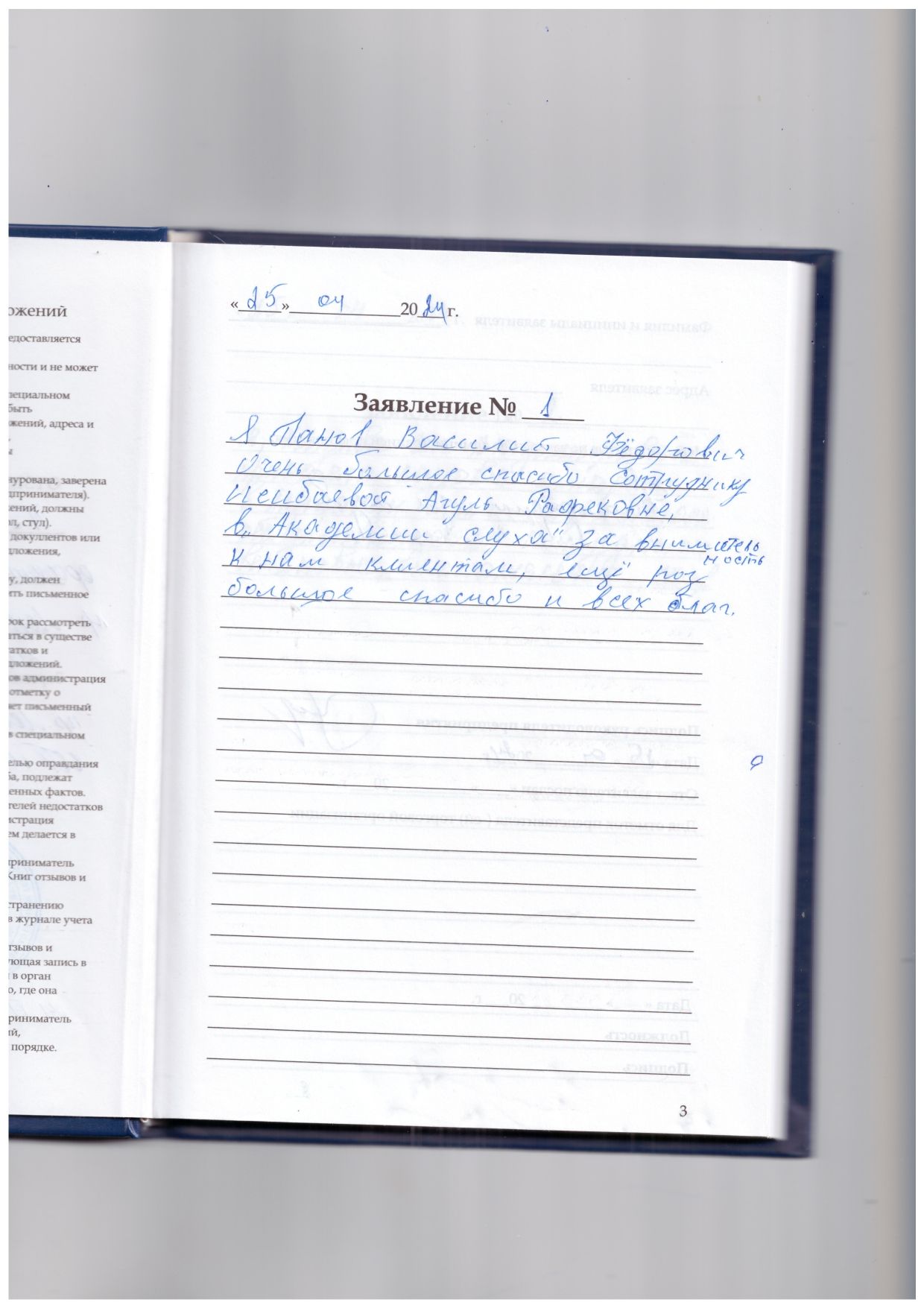 Я, Панов Василий Федорович, очень большое спасибо сотруднику Исибаевой Айгуль Рафековне в «Академии слуха» за внимательность к нам клиентам, еще раз большое спасибо и всех благ.