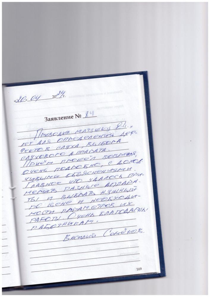 Большое спасибо за проведенный прием, тест слуха и подбор СА в Академии слуха. Буду советовать Ваш центр своим знакомым.