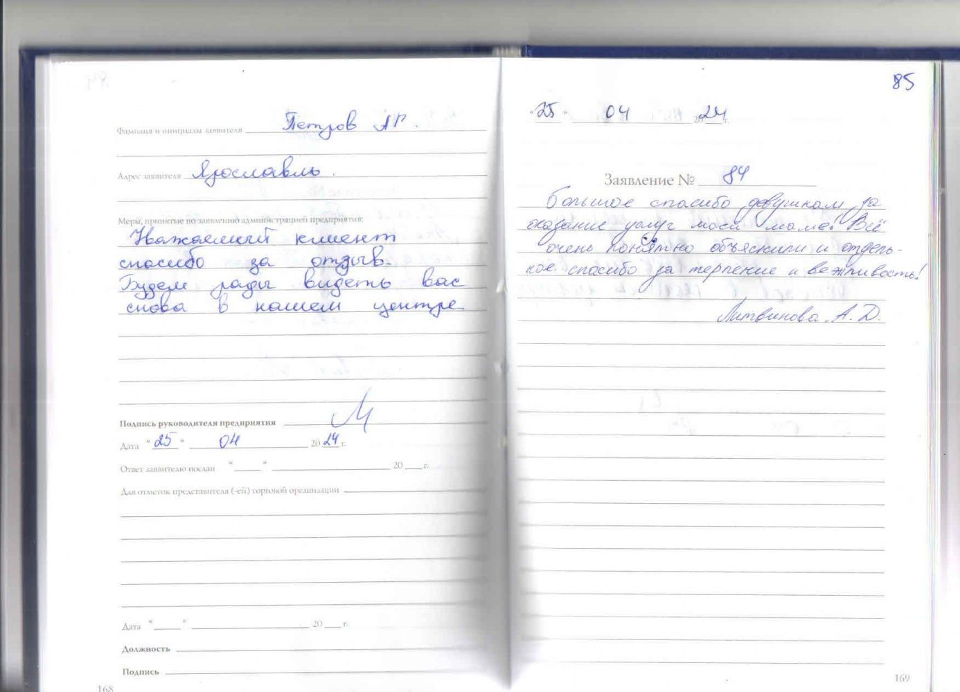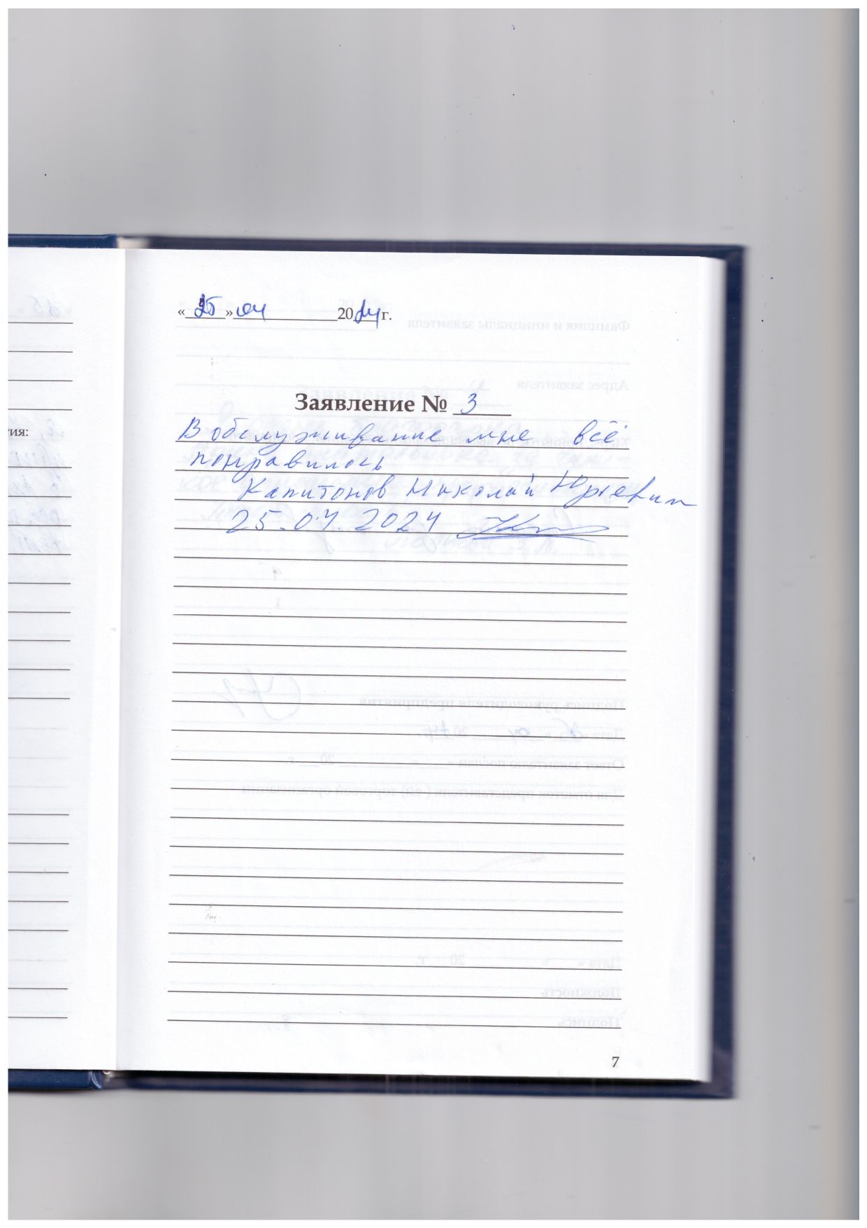 В обслуживании мне все понравилось. Капитонов Николай Юрьевич. 25.04.2024