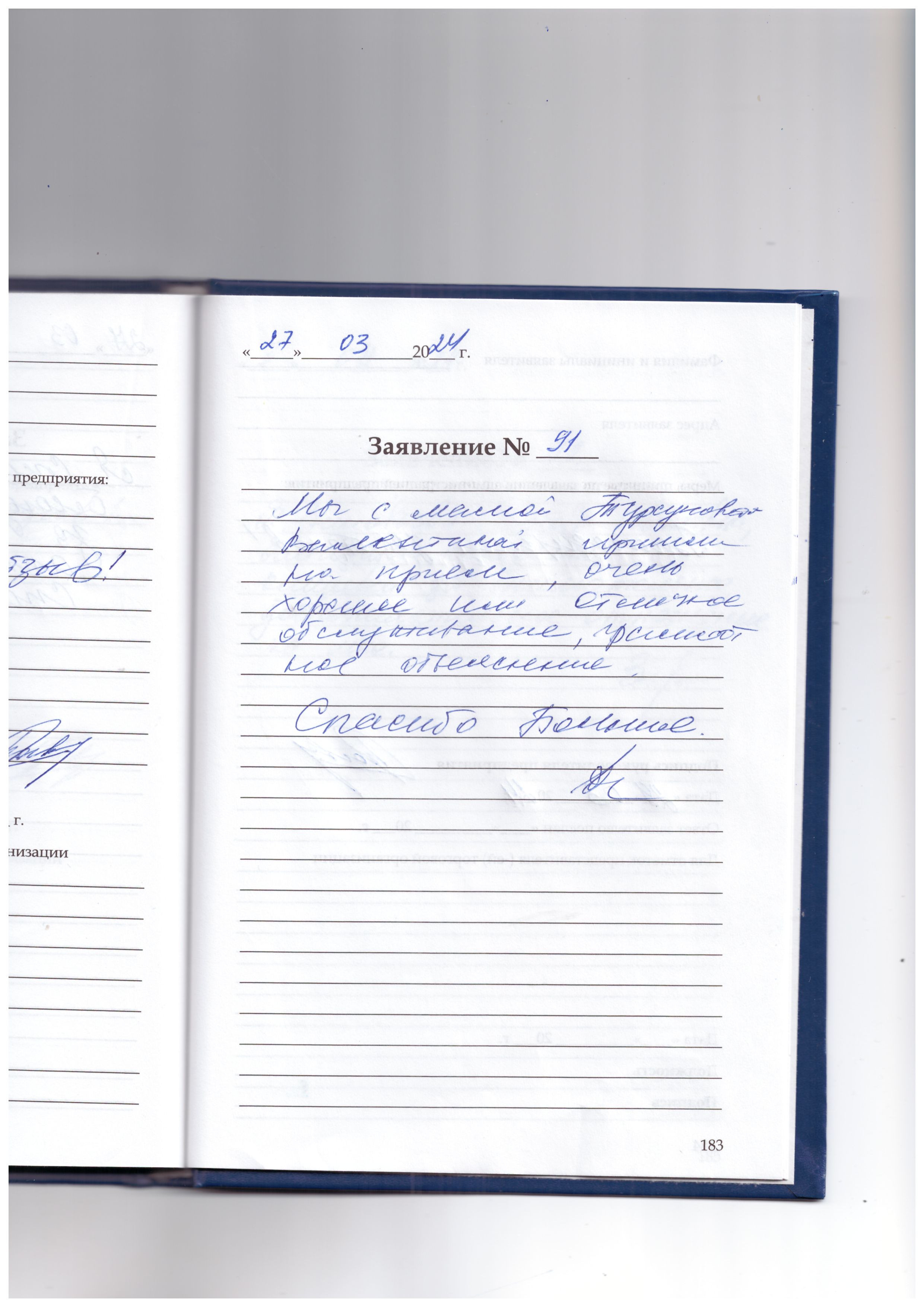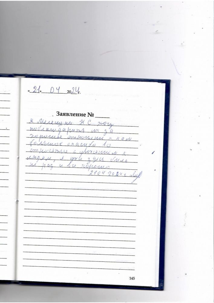 Я, Мелещенко Н.С. хочу поблагодарить их за хорошее отношение к нам. Большое спасибо все относятся с уважением к людям, я уже здесь была не раз и всё хорошо.