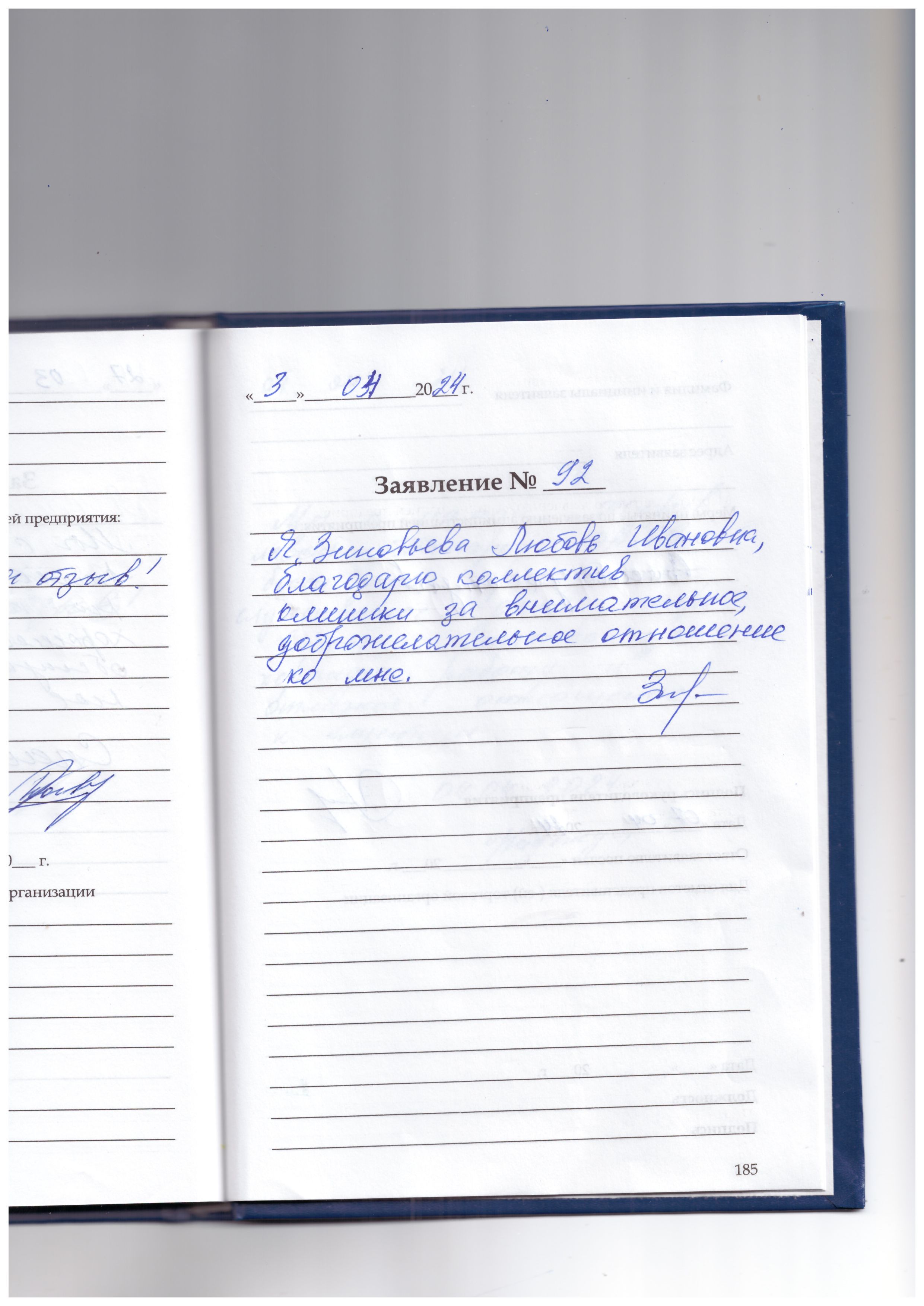 Я, Зиновьева Любовь Ивановна, благодарю коллектив клиники за внимательное, доброжелательное отношение ко мне.
