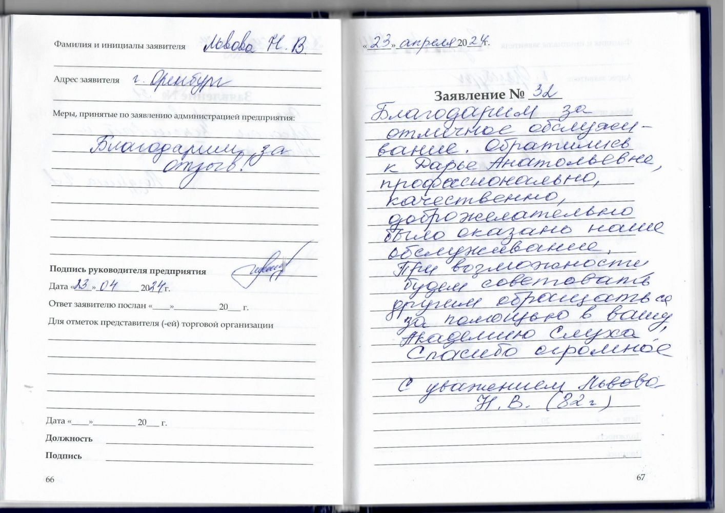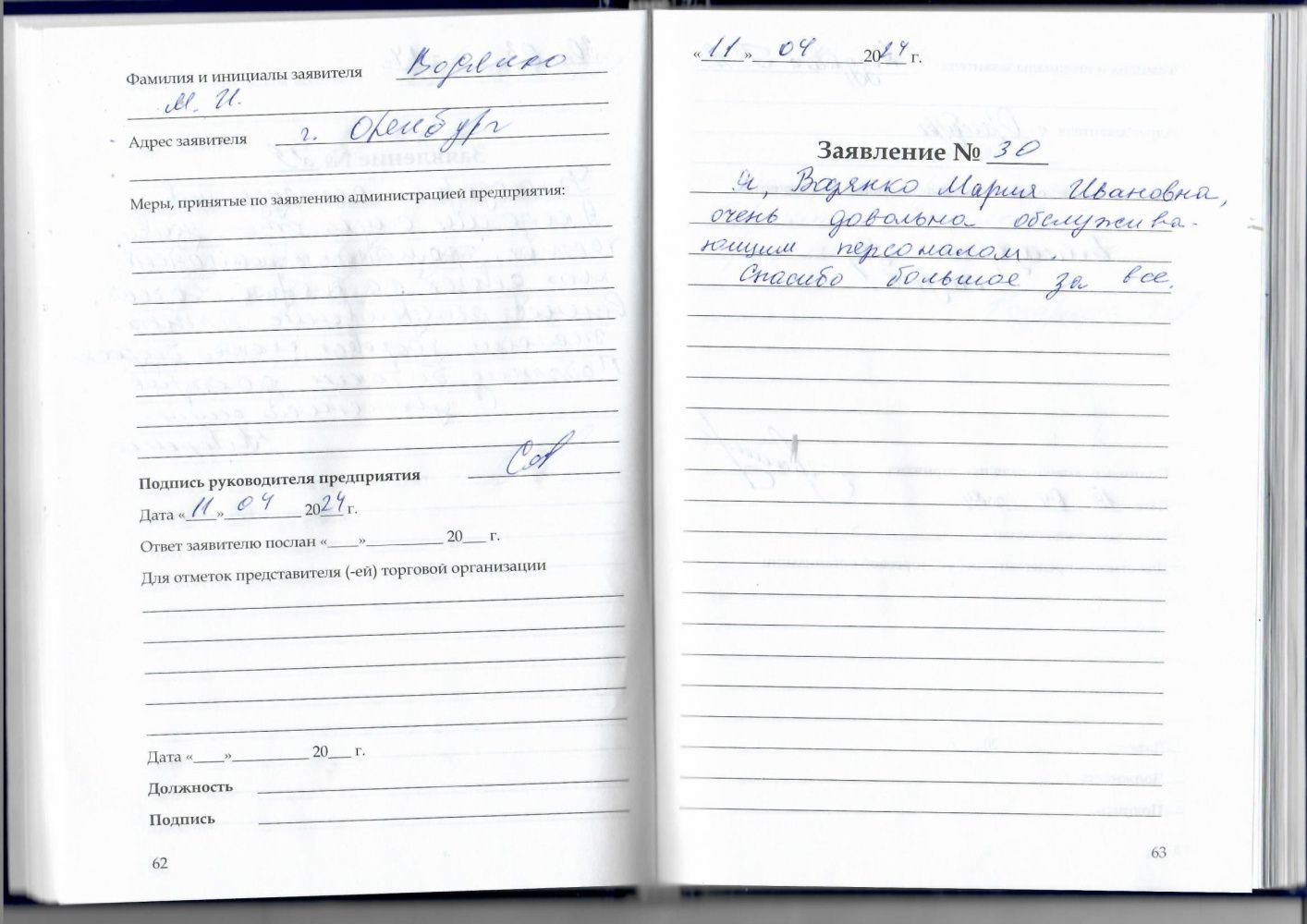 Я, Водняко Мария Ивановна, очень довольная обслуживающим персоналом.