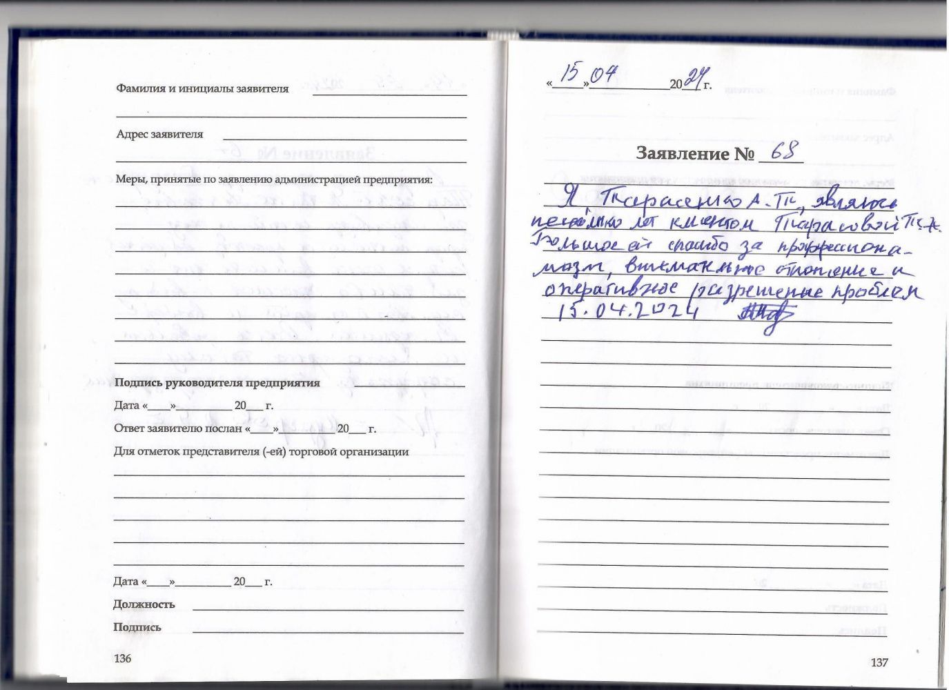 Являюсь несколько лет клиентом Тарасовой Т А , Большое ей спасибо за профессионализм ,внимательное отношение , и оперативны разрешения проблем 15.04.2024 г
