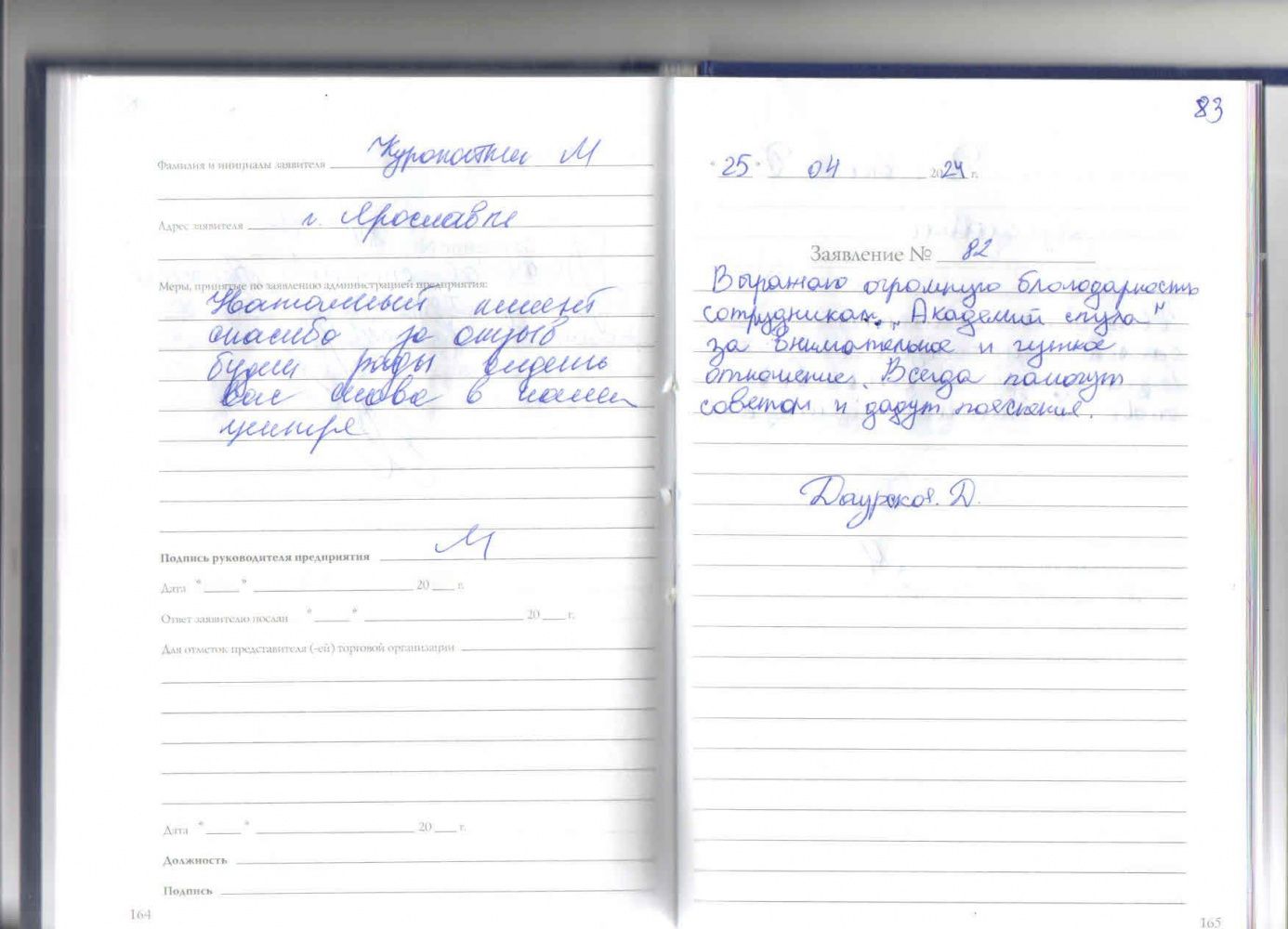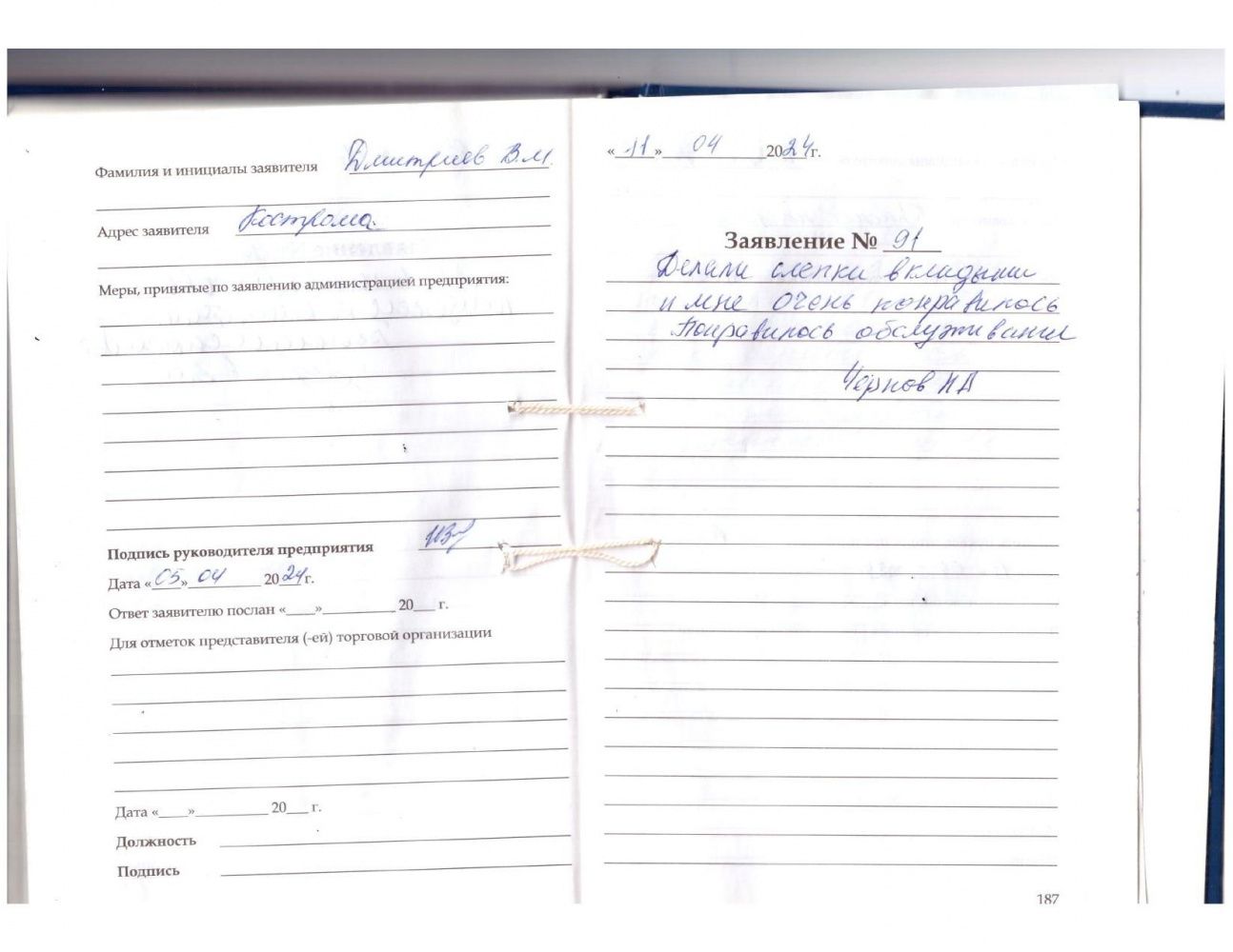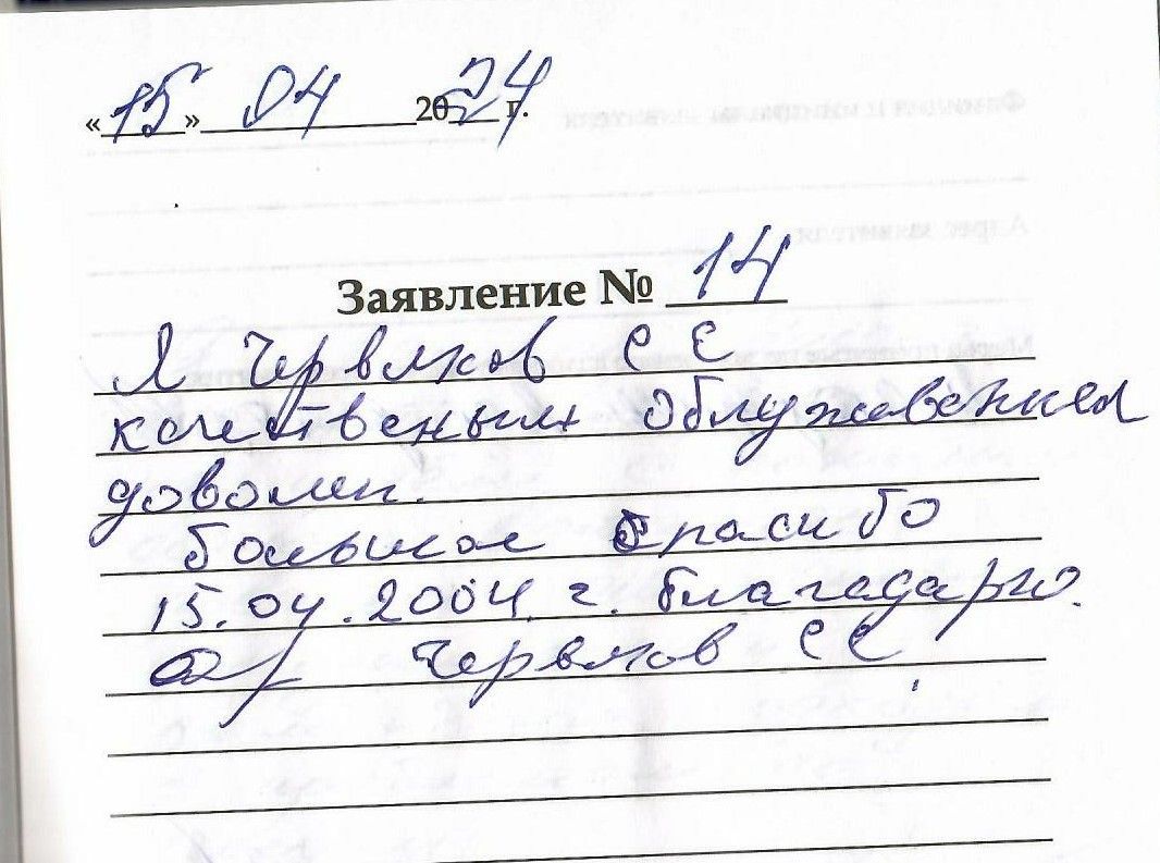 Я, Червяков С.С. качественным обслуживанием доволен. Большое спасибо. Благодарю