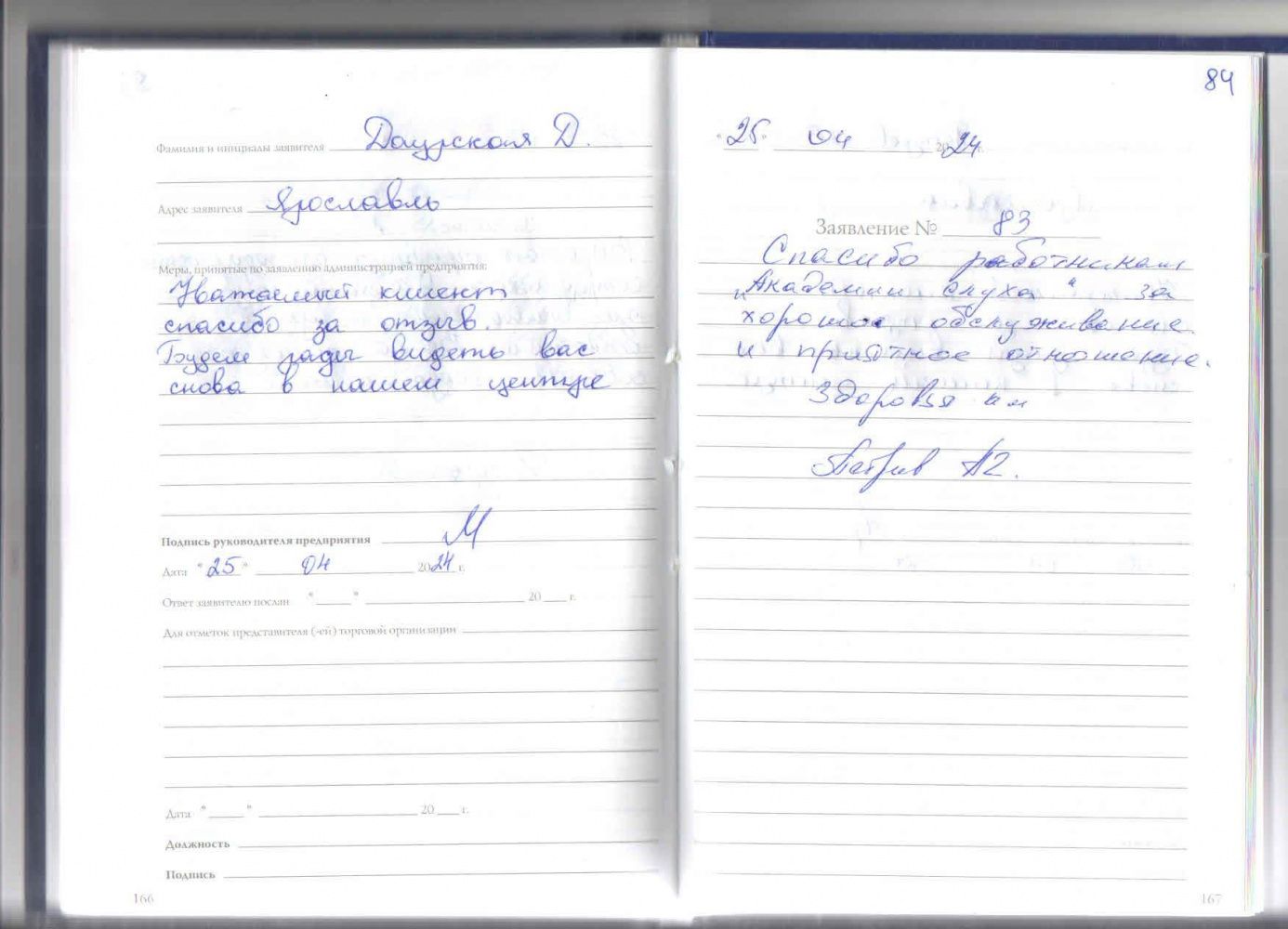 Я, Назарчук В.Ф. 4.04.20204 посетила салон Академию слуха. мне необходимо нужно было приобрести слуховой аппарат, что я и сделала. Прежде, чем приобрести,мне проверили очень тщательно на разных аппаратах мой слух и правильно подобрали нужный мне прибор (слуховой аппарат) Большое внимание и культурное обслуживание оказали мне слухопротезисты , за что я им очень благодарна, Большое спасибо. 4.04.2024