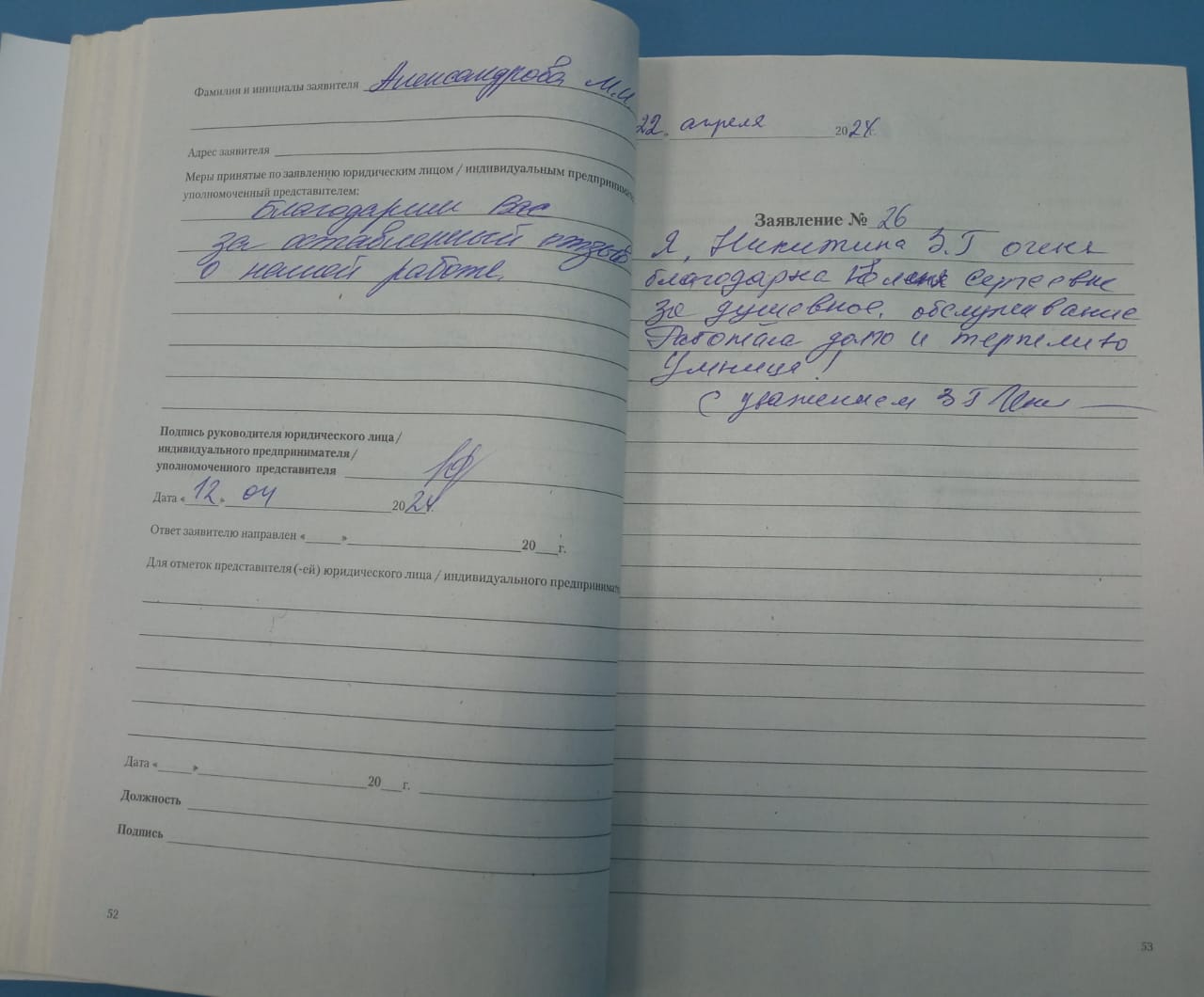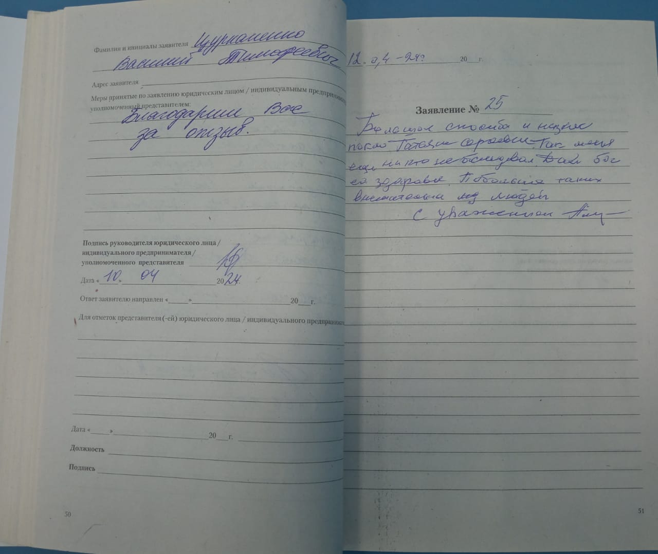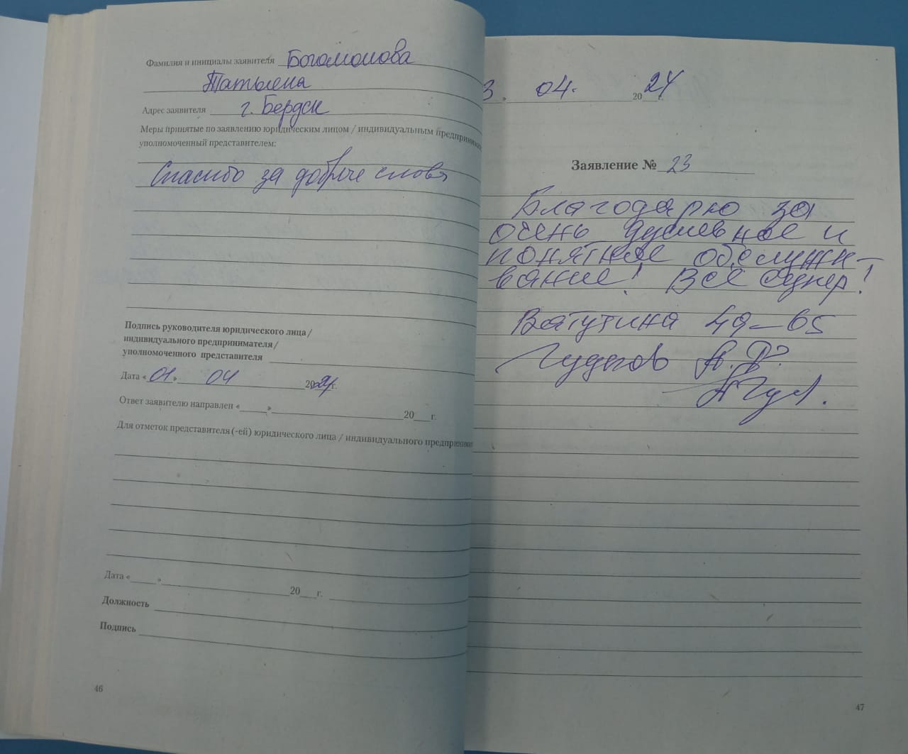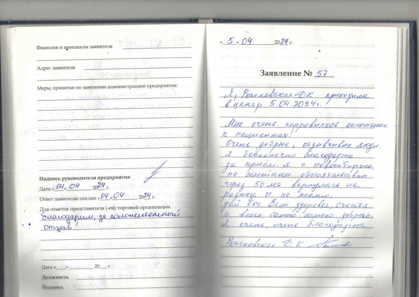 Очень добрые, отзывчивые люди. Я бесконечно благодарна за приём. Я с Новосибирска по семейным обстоятельствам через 50 лет вернулась на родину. И не жалею, дай бог Вам здоровья, счастья и всего самого самого доброго. Я очень, очень благодарна.