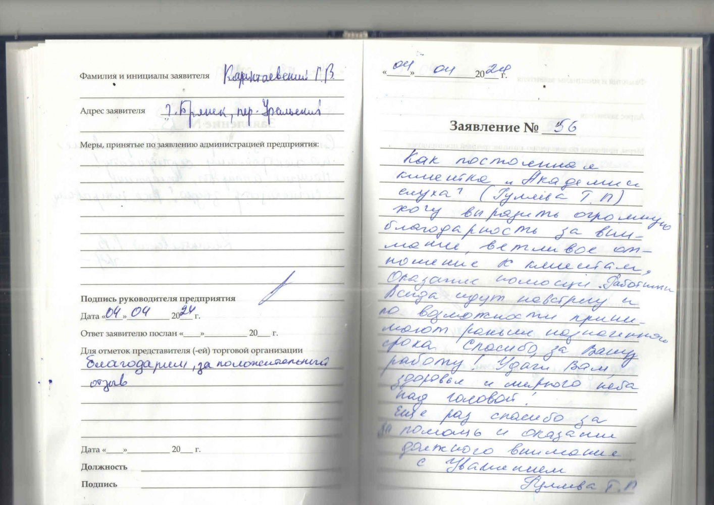 Ещё раз спасибо за помощь и оказание должного внимания с Уважением Гуляева Т.П.