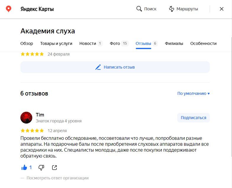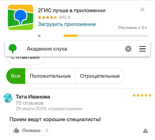 Я пришла в "Академию слуха", чтобы проверить свой слух, мне очень хорошо все объяснили, сделали аудиограмму. Аппараты планирую обязательно купить летом. Спасибо за качественное обслуживание.