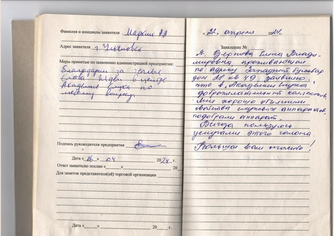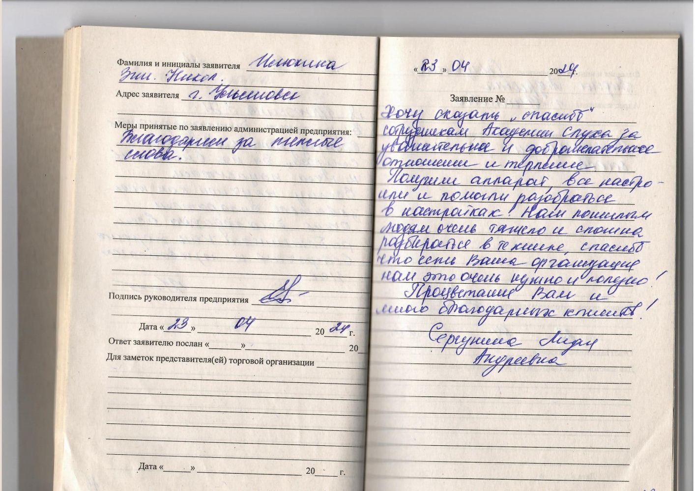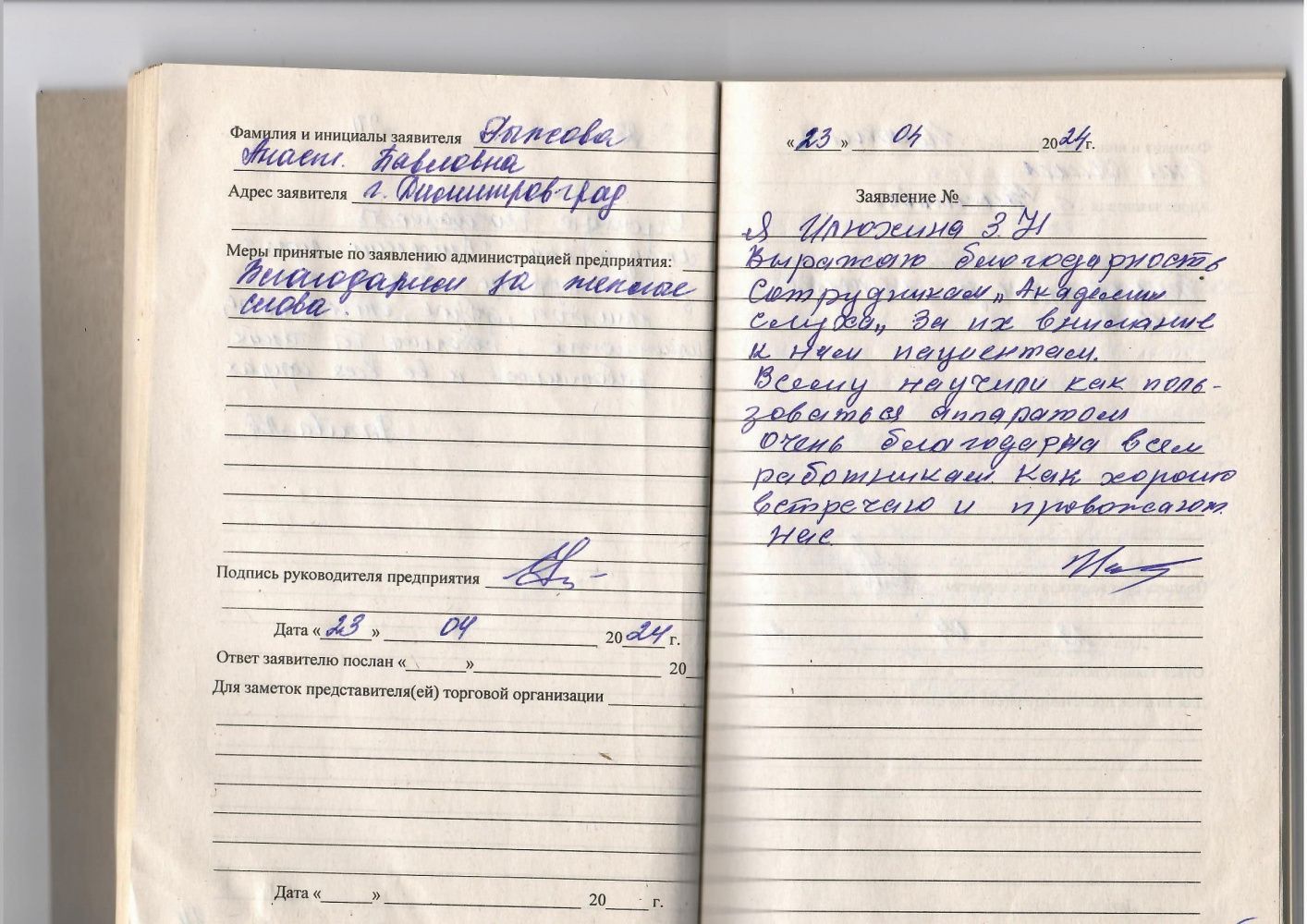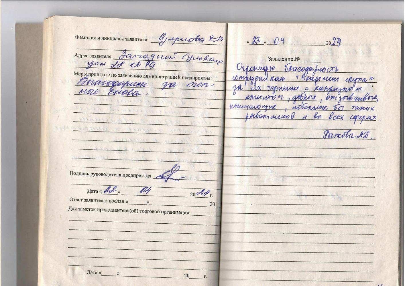 Благодарим персонал за чуткое, доброе отношение к своим пациентам. Желаем вам всем здоровья и процветания в вашем нужном деле.
