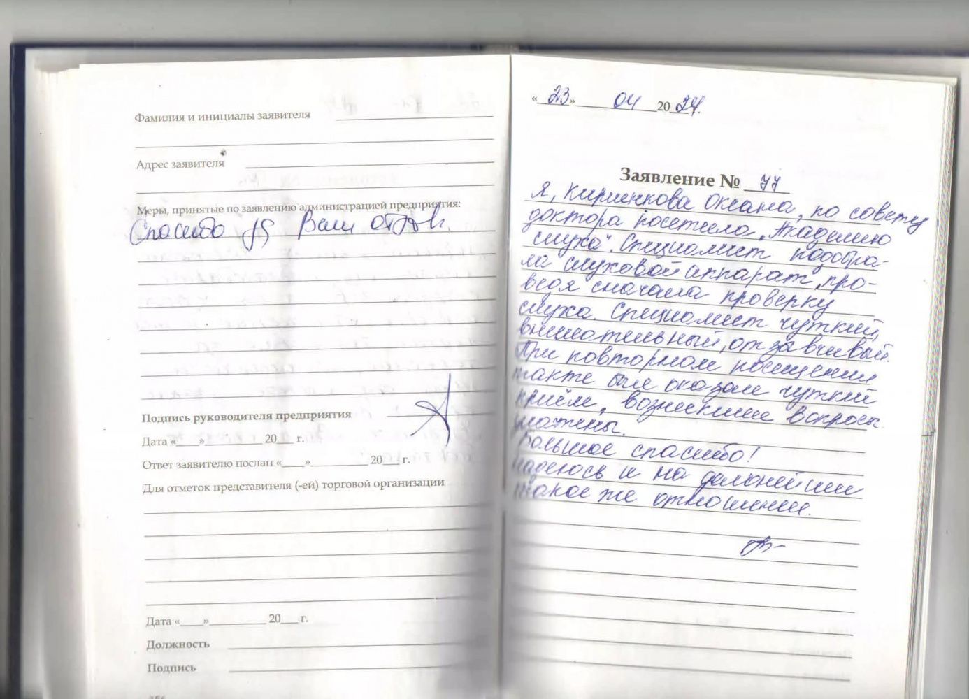 Я, Кириенкова Оксана, по совету доктора посетила " Академию Слуха, Специалист подобрала слуховой аппарат, проведя сначала проверку слуха. специалист чуткий, внимательный, отзывчивый. При повторном посещении так же был оказан чуткий прием, возникшие вопросы улажены. Большое спасибо! Надеюсь и на дальнейшее такое же отношение.
