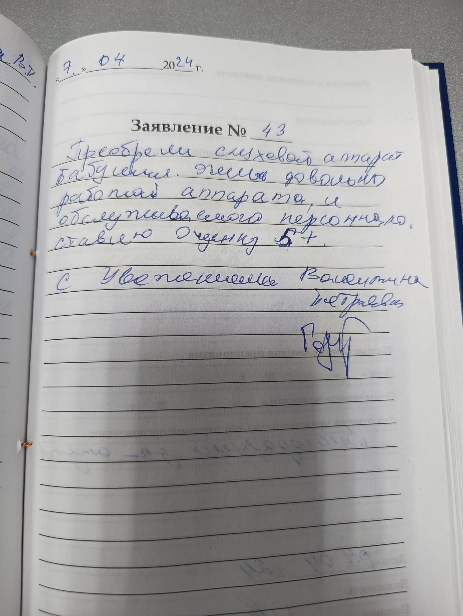 приобрели слуховой аппарат бабушке, очень довольны работой аппарата и обслуживанием персонала, ставлю оценку 5+. с уважением Валентина Петровна