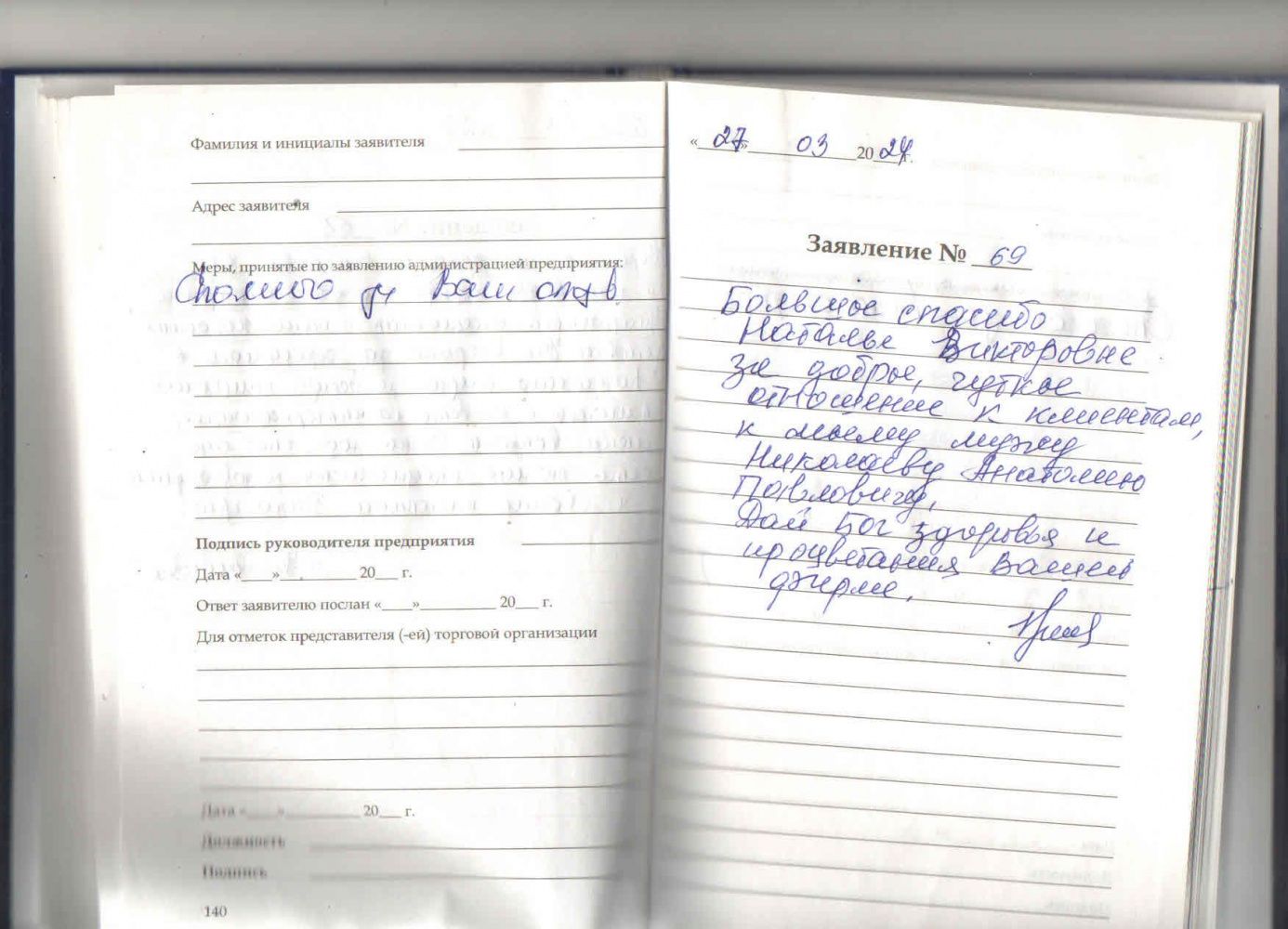 Большое спасибо Наталье Викторовне за доброе, чуткое отношение к клиентам, к моему мужу Николаеву Анатолию Павловичу. Дай Бог здоровья и процветания Вашей фирме.
