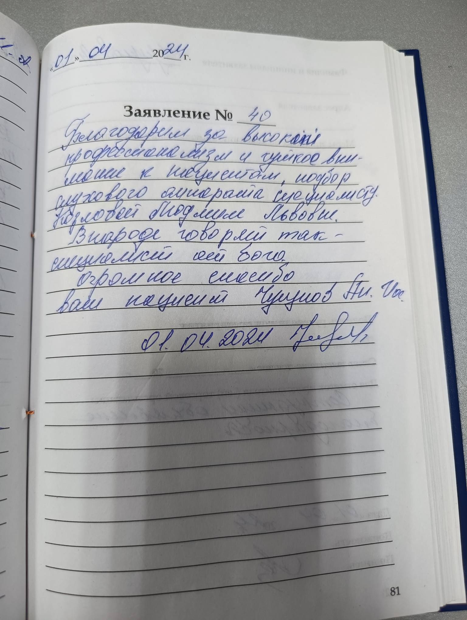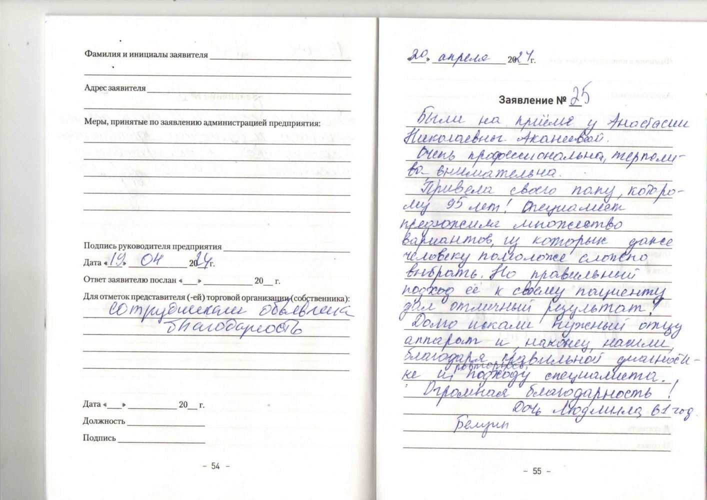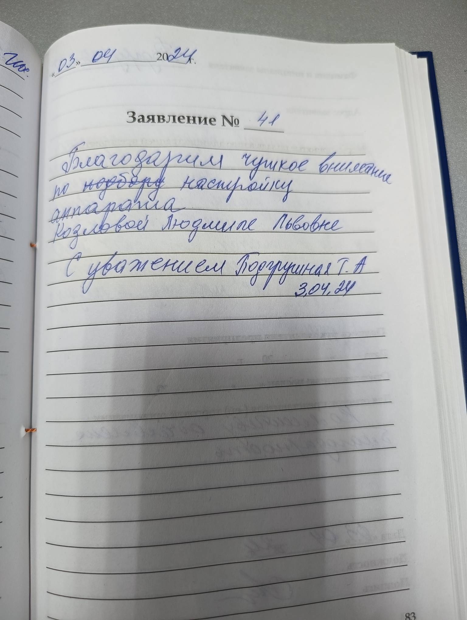 благодарим чуткое внимание по настройке аппарата Козловой Людмиле Львовне. с уважением Подгрушная Т.А.