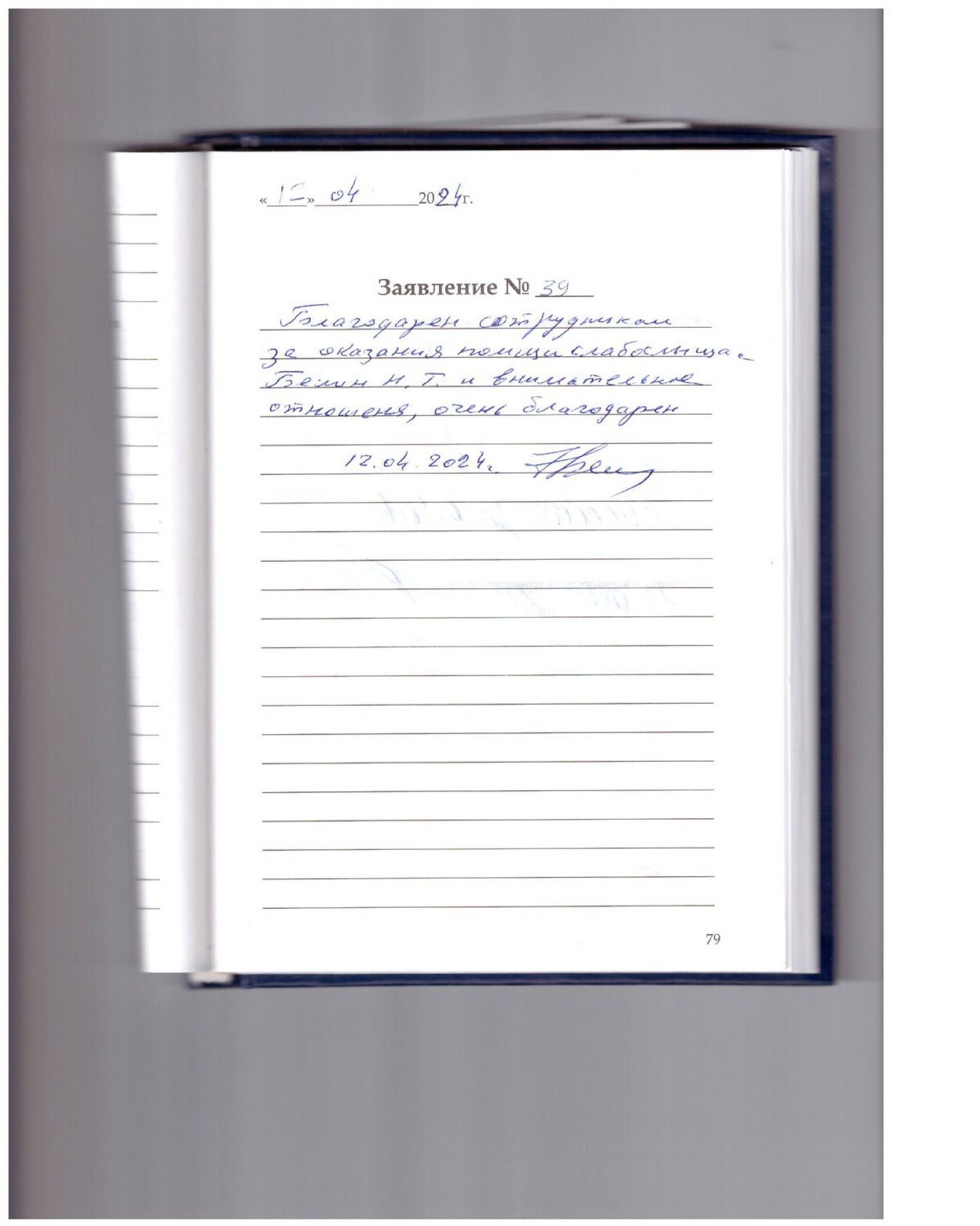 Благодарен сотрудникам за оказание помощи слабослышащему Белину Н.Г. и внимательное отношение , очень благодарен.