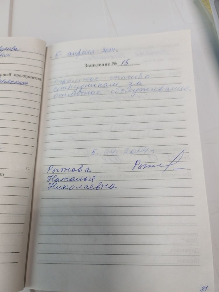 Огромное спасибо сотрудникам за отличное обслуживание.