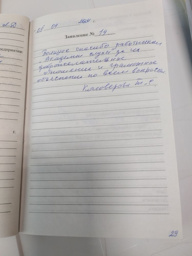 Большое спасибо работникам "Академии слуха" за их доброжелательное отношение и грамотное объяснение по всем вопросам.