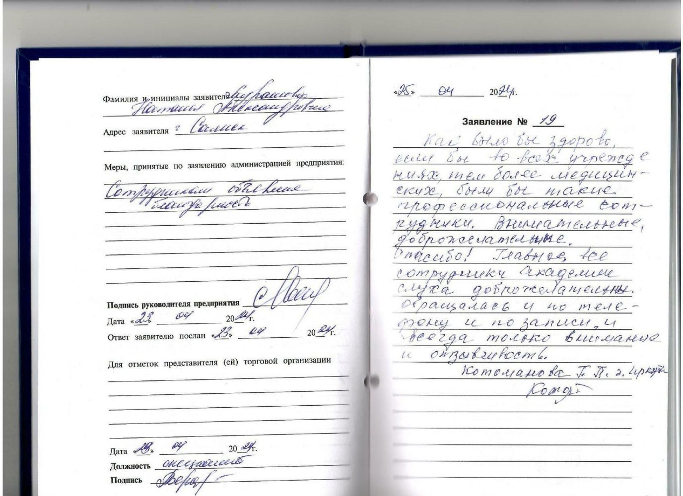 Спасибо сотрудникам за внимательное отношение за профессиональный подход.