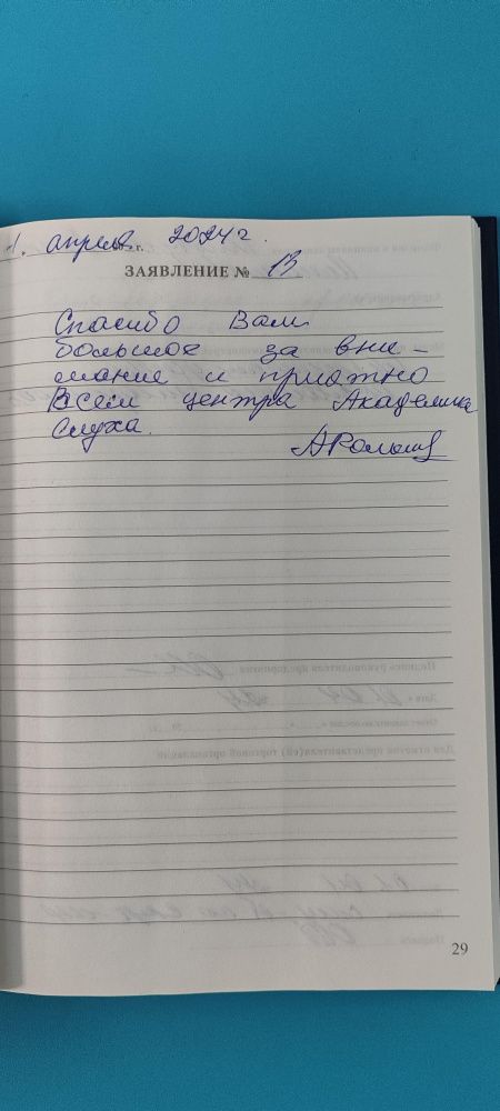 Я, Хот Г.А. благодарен "Академия Слуха" за отличное обслуживание. Всем желаю здоровья и удачи! Хот Г.А.