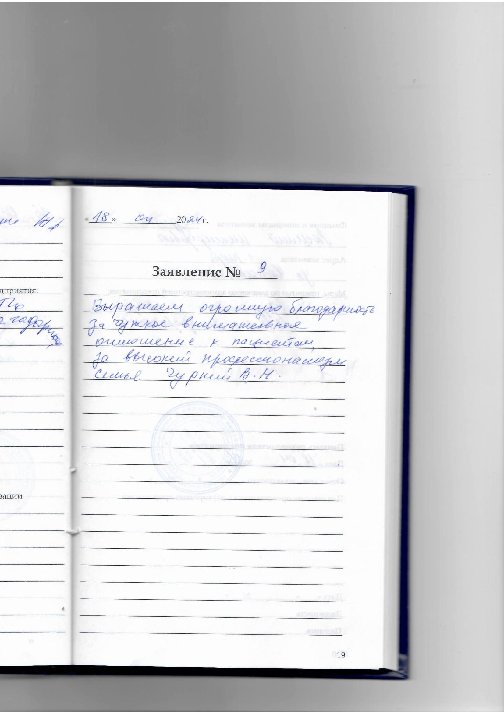 Благодарим за чуткое отношение и за профессионализм. Кулик Галина Васильевна 20 апреля
