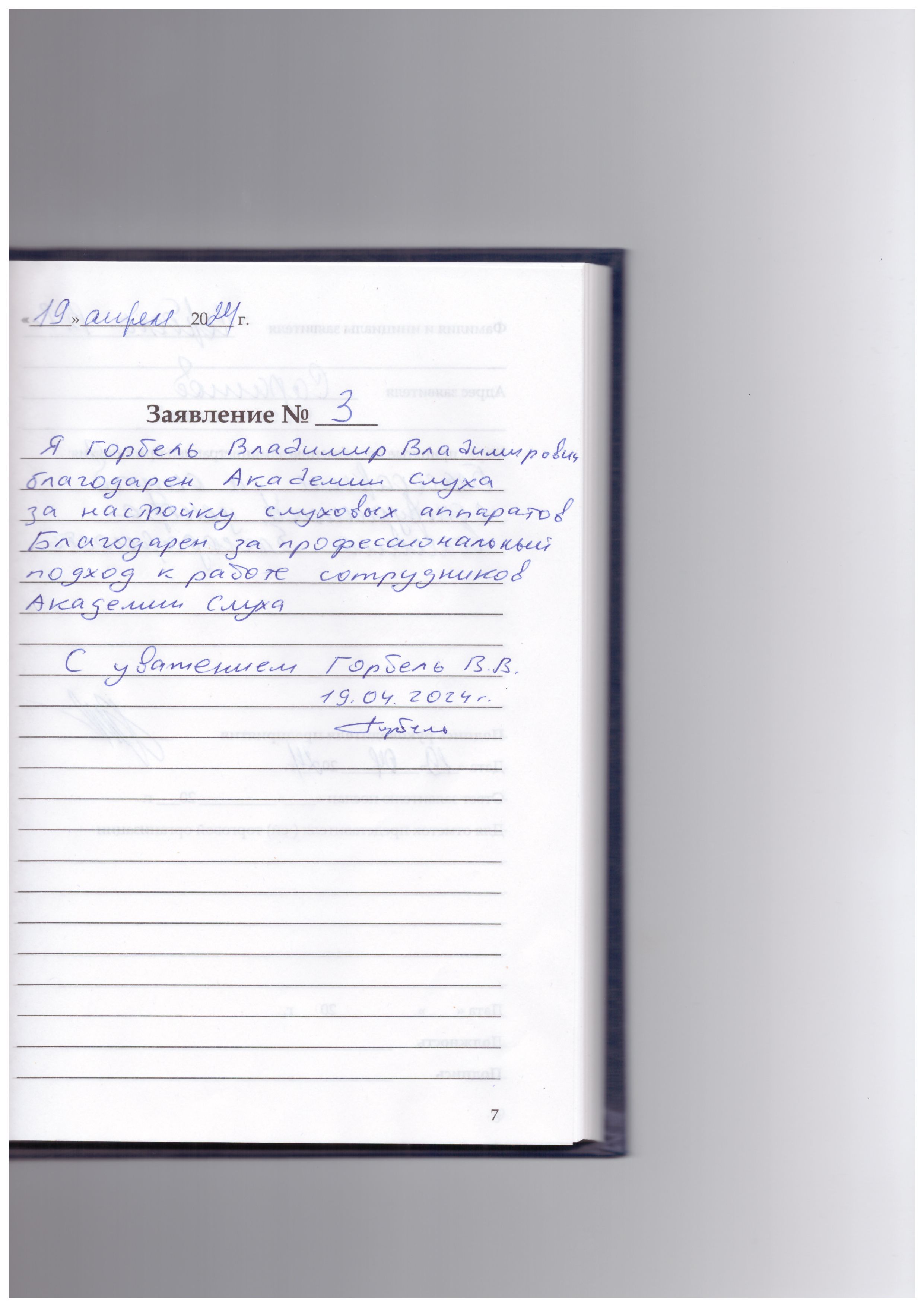 Я Горбель В.В благодарен Академии слуха за настройку слуховых аппаратов, за профессиональный подход к работе сотрудников. с уважением Горбель В.В. 19.04.2024г.