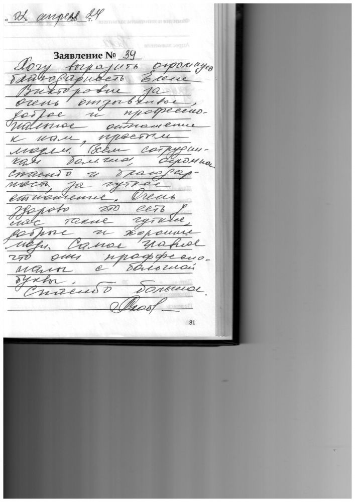 Хочу выразить огромную благодарность Елене Викторовне за очень отзывчивое, доброе и профессиональное отношение к нам, простым людям. Всем сотрудникам большое, огромное спасибо и благодарность, за чуткое отношение. Очень здорово что есть у нас такие чуткие, добрые и хорошие люди. Самое главное что они профессионалы с большой буквы. Спасибо большое.
