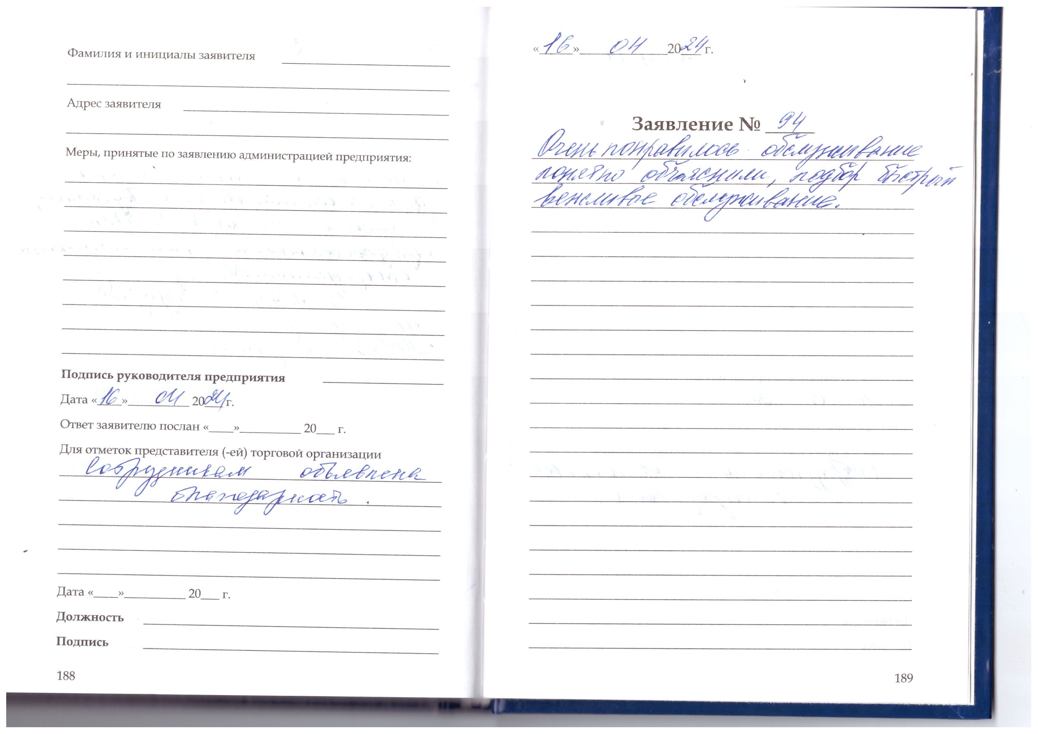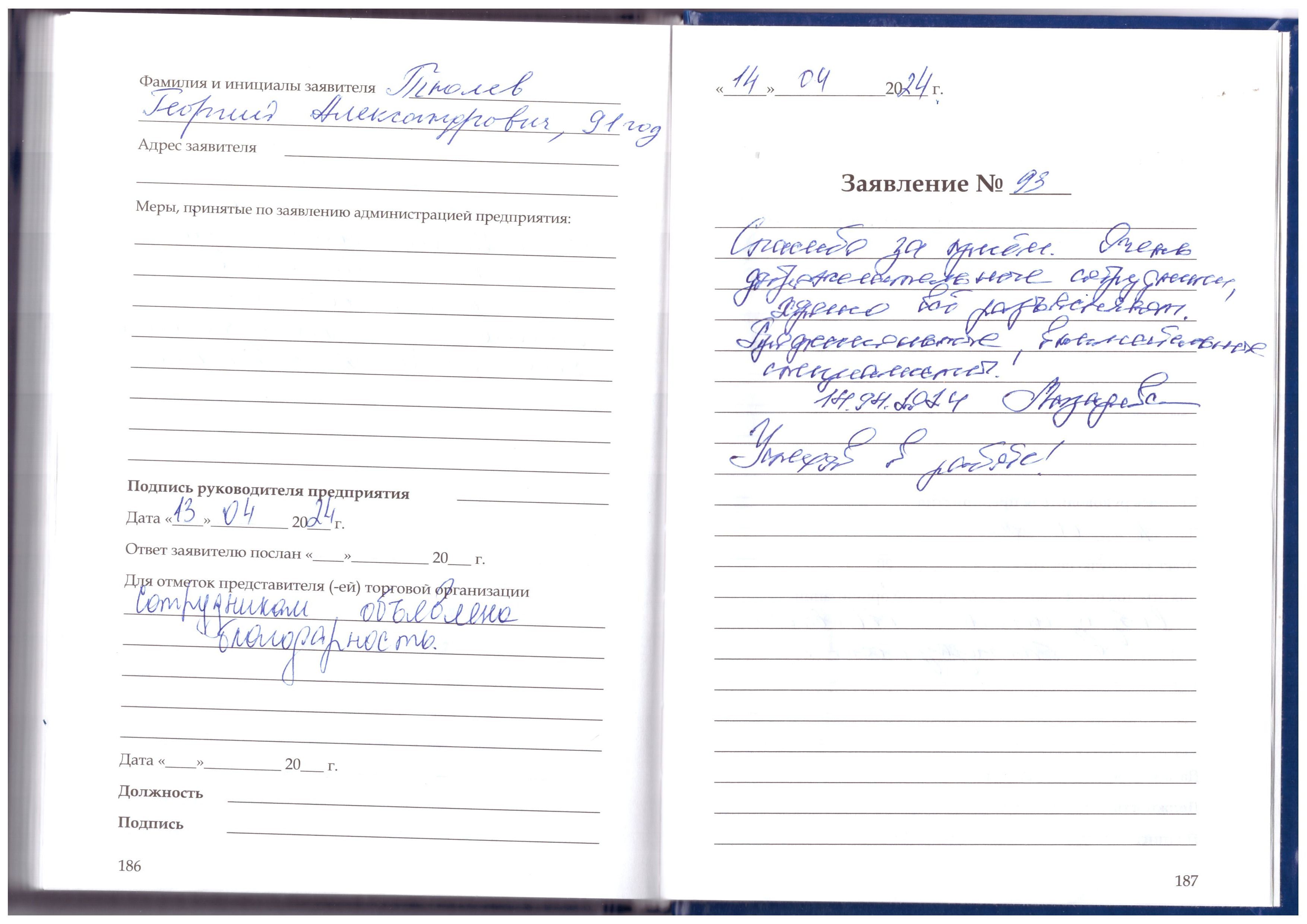 Спасибо большое за отличное обслуживание посетителей. Выражаю искрению благодарность.