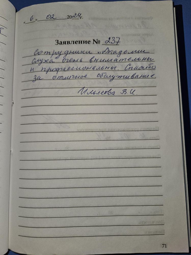Сотрудники «Академия Слуха» очень внимательны и профессиональны. Спасибо за отличное обслуживание. Ильясова В.И. пгт Левинцы