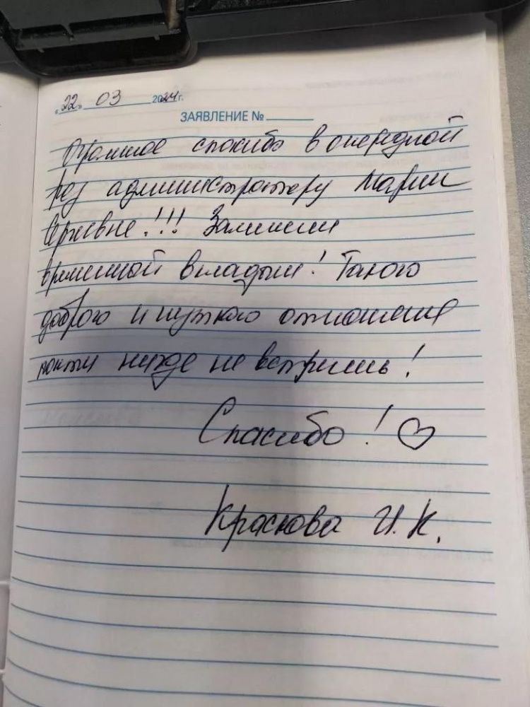 Большое спасибо персоналу Ирине и Елене,Обьявляю от моего имени благодарность и наградить за образцовое обслуживание и внимание к нам пенсионерам.С уважением инвалид 2 группы.
