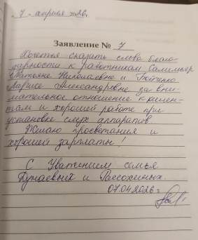 Выражаю благодарность Елене Васильевне Письмак за качественную настройку слуховых аппаратов. На приеме Елена Васильевна провела диагностику слуха, уделила внимание четкости восприятия человеческой речи. При настройке слуховых аппаратов один из них (левый) долго издавал ложное шлеканье. Елена Васильевна нашла эту причину и устранила. Довольна, наконец-то могу комфортно общаться. Хочу отметить взаимопомощь и дружелюбие сотрудников друг с другом. Это вызывает уважение к ним. Всем спасибо. Успехов. Харкевич Галина Дм.