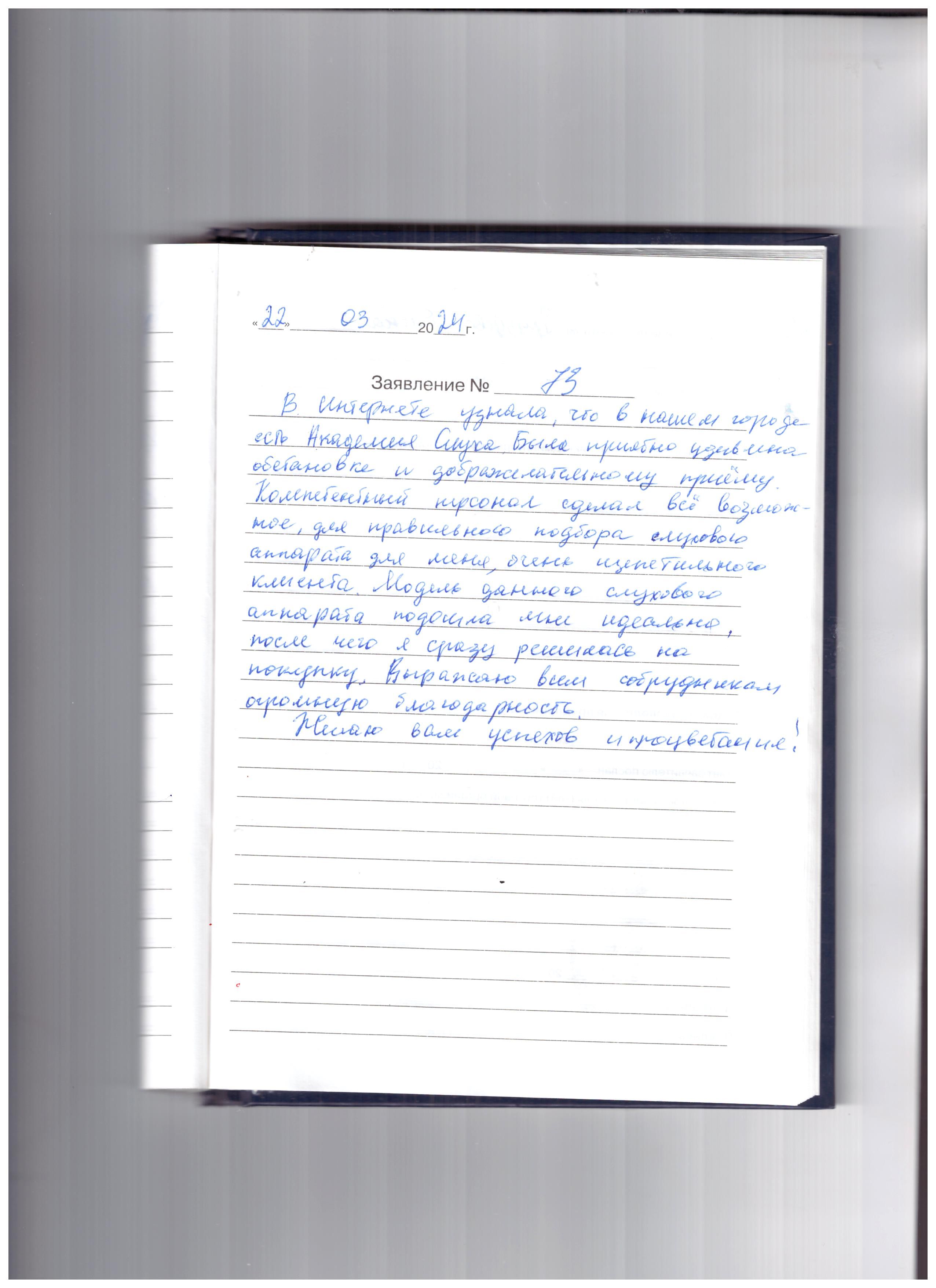 Огромное спасибо за хорошее и профессиональное обслуживание и качественную настройку слухового аппарата
