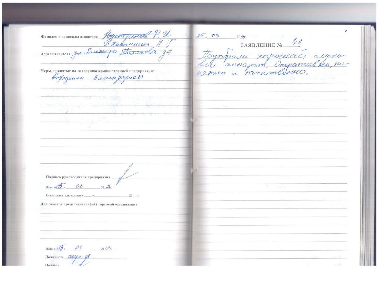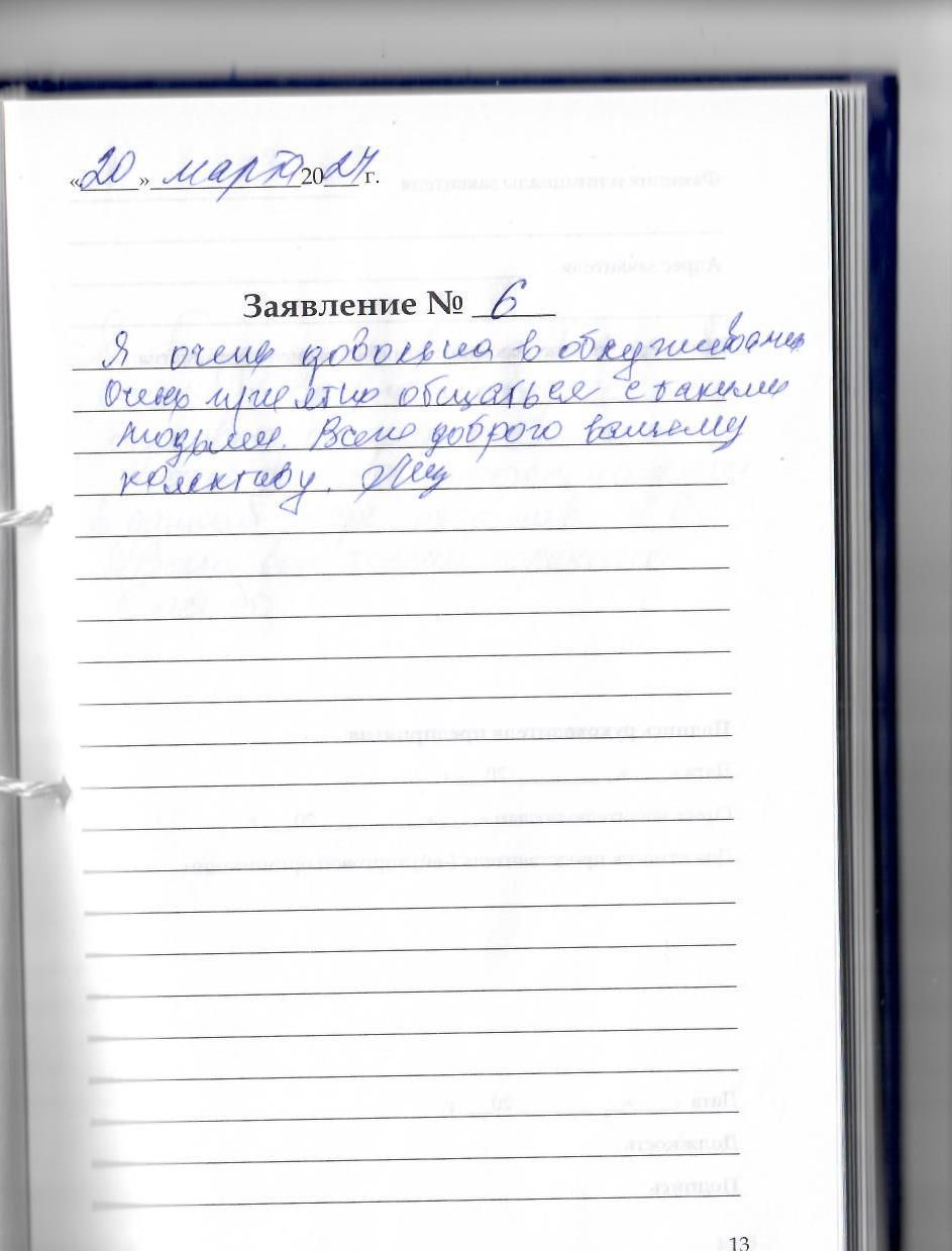 Я очень довольна в обслуживании . Очень приятно общаться с такими людьми. Всего доброго вашему коллективу.